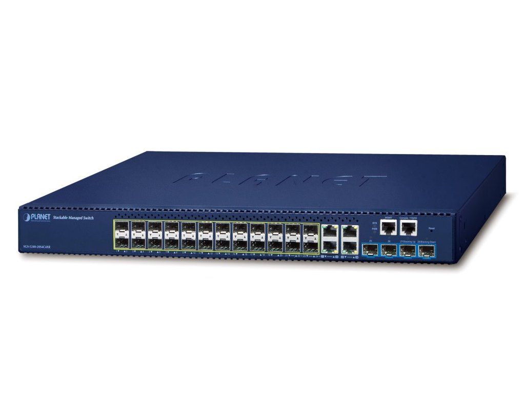 Planet SGS-5240-20S4C4XR L3 switch, 4x1Gb, 20x1Gb SFP, 4x10Gb SFP+, HW/IP stack, 2x power-in