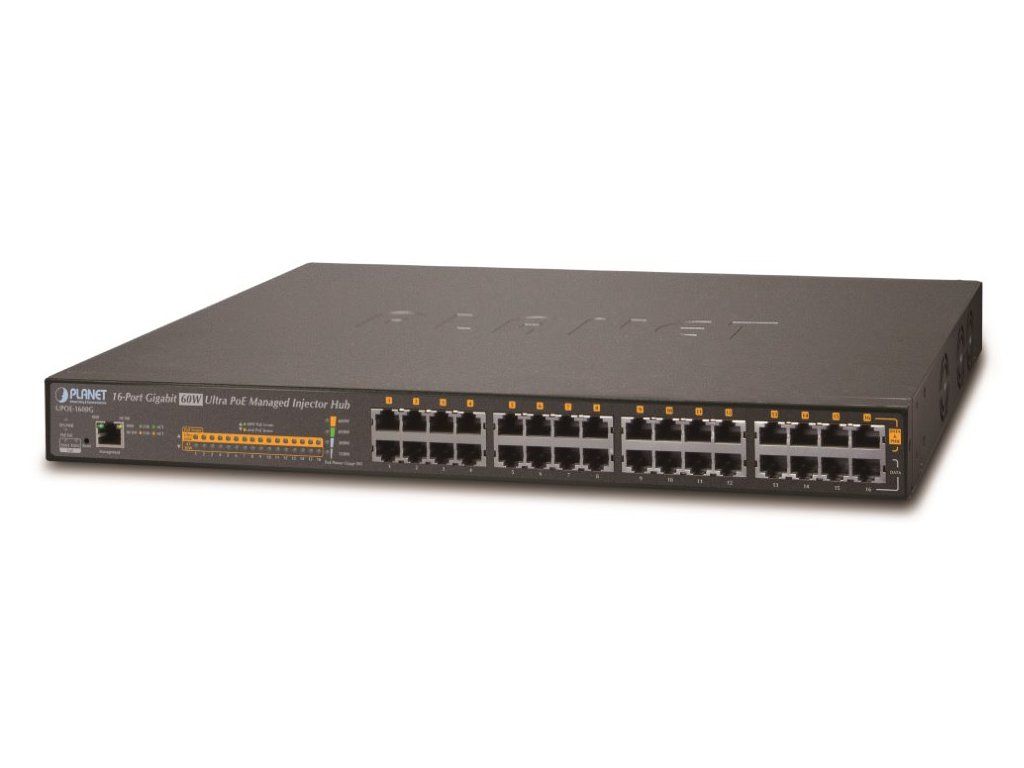 Planet UPOE-1600G Ultra PoE+ injektor, 16 portů, Gigabit, IEEE 802.3at <600W (60W/port), scheduler+watchdog
