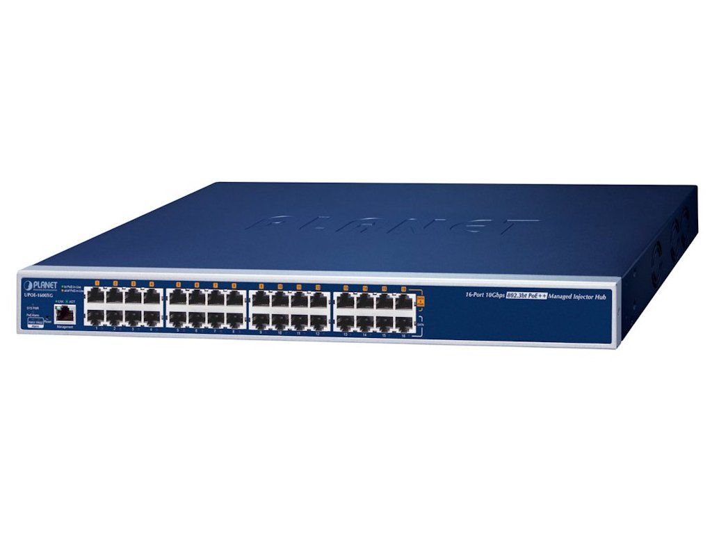 Planet UPOE-1600XG Ultra PoE++ injektor, 16 portů, 10 Gigabit, IEEE 802.3bt <600W (60W/port), scheduler+watchdog