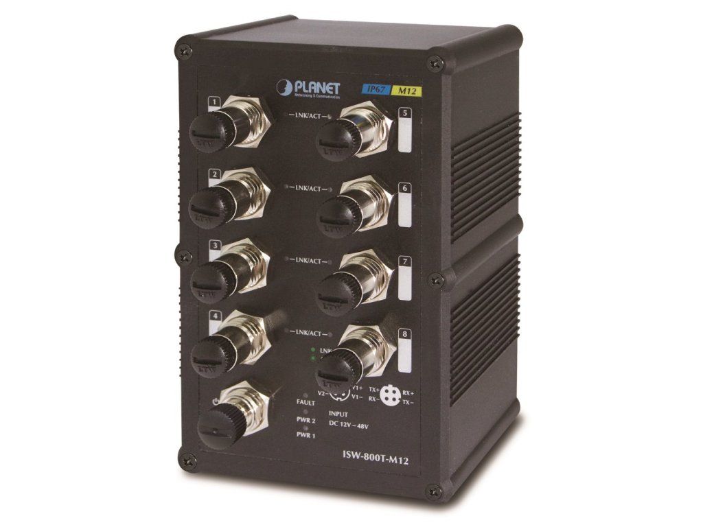 Planet vodotěsný průmyslový switch, 8x100Mb M12, -40~+75°C, IP67, 12-48VDC