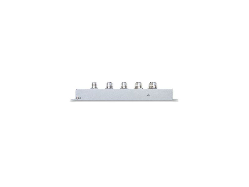 Porty: 8x 10/100/1000 Base-T M12 (8pin X-coded female), 1x napájecí port M12 (5pin A-coded male)