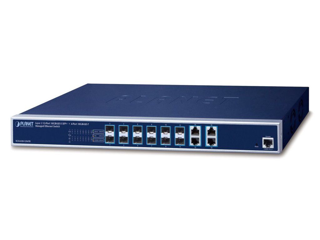 PLANET XGS-6320-12X4TRŠpičkový řízený multiportový 10 Gb/s switch s L3/L2 přepínáním a bezpečnostními funkcemi.