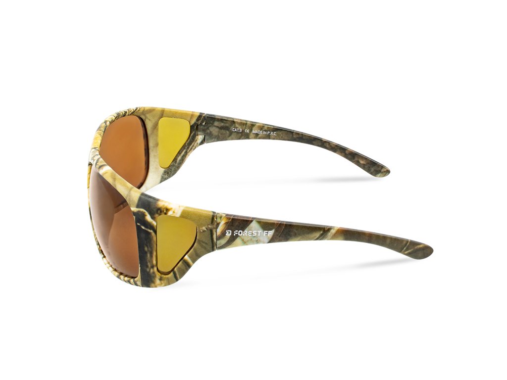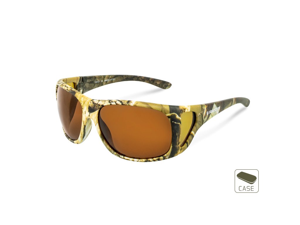 Polarizační brýle z řady SG FOREST v kamuflážovém provedení, které jsou přímo stvořené pro rybáře, či myslivce. Hnědé polarizační skla zaručují ochranu před slunečním zářením, ať už jste na lovu či procházce v přírodě. Označení FF (Full Frame) znamená, že rám brýlí je kolem celých skel. Po bocích brýlí se navíc nacházejí dvě malé polarizační skla, které pohlcují sluneční záření z boku a také zlepšují vaše periferní vidění. Lehký materiál, ze kterého jsou vyrobeny zaručuje nejen pohodlné nošení, ale i odolnost vůči poškození. Brýle SG FOREST jsou zabaleny a dodávány v pevném pouzdře se stylovou kamufláží. Polarizační brýle Delphin jsou vysoce kvalitním produktem se všemi potřebnými certifikáty a zkouškami vyžadovanými Evropskou unií. To garantuje jejich zdravotní způsobilost a špičkové vlastnosti potvrzeny mnoha testy. Technické parametry: Šířka nos: 2,2cm Rozměr skla: 63cm x 47cm Délka ramínka: 10,4cm Hmotnost: 28gDoplňkové parametry