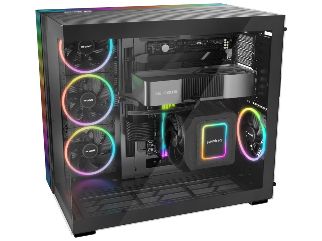 Další předností je podpora přemístitelných nožiček, díky čemuž můžete PC otočit a umístit ve svislé i vodorovné poloze. PC skříň Be quiet! LIGHT BASE 900FX je osazena 4 předinstalovanými ventilátory s ARGB posvícením. Light Wings ventilátory svým designem lopatek podporují optimalizované proudění vzduchu a snižují turbulence pro dosažení tichého provozu. Prostor uvnitř skříně vám umožní vytvořit rozmanité konfigurace s extrémně výkonnými grafickými kartami, radiátory nebo základními deskami ve formátu E-ATX, XL-ATX, ATX, Micro ATX, Mini-ITX.