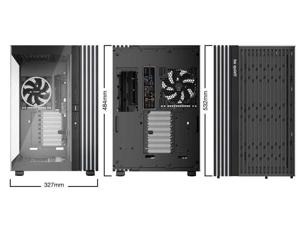 Počítačová skříň Be quiet! LIGHT BASE 900FX moderního střihu, která svými rozměry a funkčností potěší všechny náročné uživatele a kutily. Kombinuje stylový vzhled s průhlednými panely spolu s efektivním chlazením. Ve výsledku pak získáte skvěle vypadající PC systém s vysokým výkonem a tichým provozem. Uplatní se při tvorbě herní sestavy, multimediálního centra i pracovní stanice. Pro variabilní konfiguraci je zde místa víc než dost. Velké průhledné panely na přední a boční straně poskytují panoramatický pohled na komponenty uvnitř skříně. Fanoušky osvětlení potěší přítomnost ARGB LED pásku.