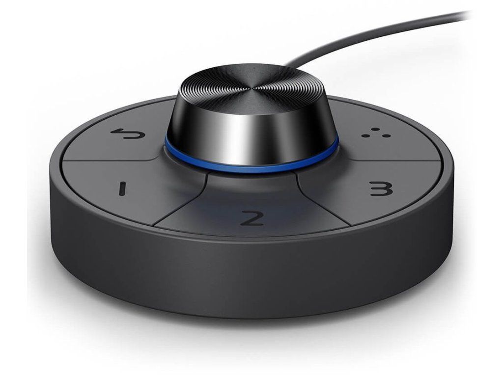 Součástí balení je dálkový ovladač Hotkey Puck G2, který slouží k rychlému přepínání nastavitelných módů obrazu bez nutnosti vstupu do menu. Kromě několika funkčních tlačítek obsahuje tento ovladač také otočné kolečko, které umožňuje rychlou úpravu jasu, kontrastu nebo hlasitosti.