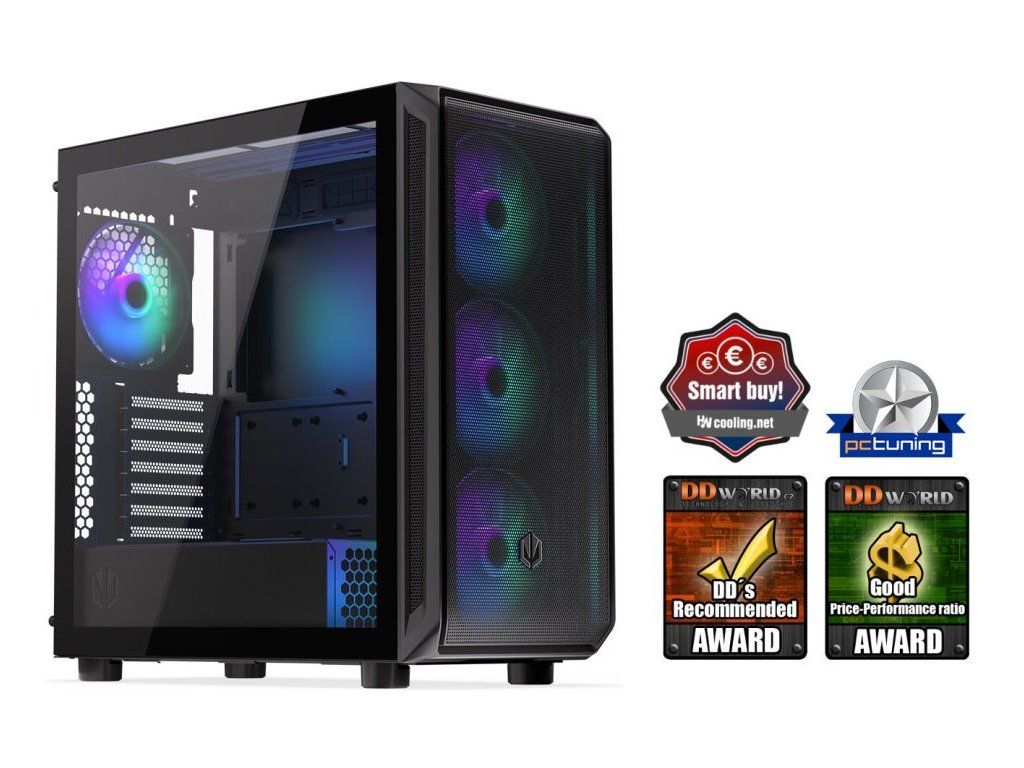Endorfy Arx 700 ARGBSkříň formátu Middle Tower s průhlednou bočnicí nabízí šest 2,5" pozic pro SSD disky a jednu 3,5" pozici pro pevný disk. Na horním panelu naleznete dva porty USB 3.0, jeden port USB-C a dále také konektor pro sluchátka a konektor pro mikrofon. Skříň je osazena čtyřmi ventilátory o velikosti 140 mm s ARGB podsvícením. Důmyslné řešení umožňuje pohodlné umístění až 360 mm dlouhého výměníku vodního chlazení na přední a horní straně. Ve skříni je dostatek prostoru pro chladič CPU do výšky až 179 mm a grafickou kartu o délce 410 mm. Skříň je dodávána bez zdroje. Součástí je také sada prachových filtrů.