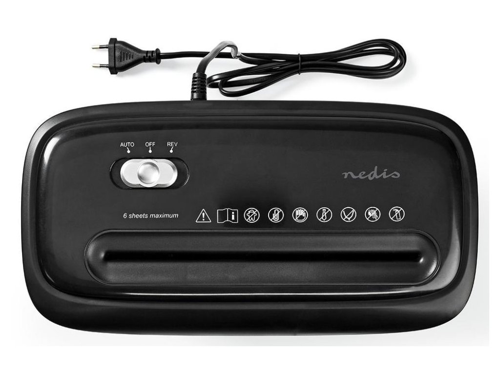 Nedis PASH120BKA4Skartovačka s křížovým řezem, která dokáže pojmout až 6 listů papíru A4 najednou. Je vhodná pro skartování dopisů, složek, a dokonce i bankovních karet. Dokumenty a karty jsou skartovány do úrovně zabezpečení DIN-P4, která zajišťuje, že jsou rozřezány do těžce čitelných proužků širokých pouze 6 mm. Tento skartovač pojme až 12 litrů skartovaného materiálu, a přesto je natolik kompaktní, že jej můžete umístit pod stůl nebo dokonce i na stůl. Samozřejmostí je tlačítko pro zpětný chod, díky kterému se snadno a rychle zbavíte zaseknutého papíru.