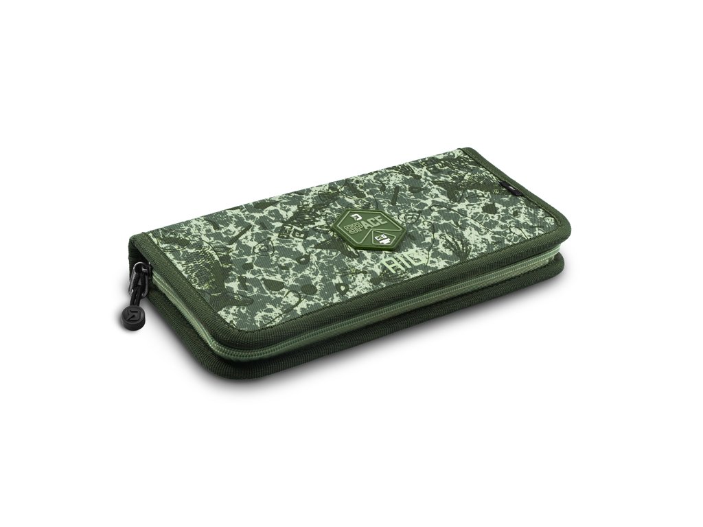 Delphin SPACE je označení pro exkluzivní sérii tašek z dílny značky Delphin. Vyznačuje se špičkovým zpracováním, kvalitními zipy, ale zejména výjimečným designem s použitím C2G kamufláže. Delphin Rig SPACE slouží k uložení kaprařských i jiných návazců. Pouzdro je jednoduché konstrukce, avšak již dílenské vypracování svědčí o jeho kvalitě a životnosti. Z vnější strany je pouzdro zcela vyztuženo a potaženo odolným materiálem. Uvnitř se nachází vrstva PVC, na které je upevněn tvrzený molitan. Také se zde nachází 20 kusů špendlíků s kulatými hlavičkami, díky čemuž je jejich zatlačování velmi pohodlné. Kombinace vnějšího materiálu s vnitřní vrstvou PVC zajistí, že vaše návazce budou vždy dokonale chráněny a připraveny k okamžitému použití. Pouzdro je osazeno zipem s kovovým běžcem, na kterém je stylový držák s logem Delphin. Technické parametry: Rozměry: 30x14x4cm Kapacita pouzdra: 20 ks návazců o max. délce cca 24,5cm Stylová patentovaná kamufláž z dílny značky Delphin pod označením C2G má mnoho podob a úhlů pohledu. Přesně tak i její název, který můžeme volně přeložit jako Carpath 2. generace, což přímo odkazuje na jejího předchůdce, ale můžeme ho číst i jako Carpath to Green, tedy přechod myšlenky Carpathu do zelené barvy. Její jedinečnost a nezaměnitelnost spočívá v prvcích, ze kterých je vytvořena. Na první dojem jde o kamufláž tvořenou třemi různými odstíny zelené. Všechno se však změní při detailnějším pohledu, kdy si všimnete siluety kaprů, komponent kaprařské montáže a log značky Delphin spolu s označením C2G. Díky tomuto neopakovatelnému provedení se vaše rybářská výbava okamžitě stane jedinečnou a maximálně originální.Doplňkové parametry
