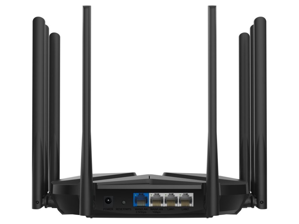 Mercusys MR90XDvoupásmový bezdrátový Wi-Fi 6 router pracující na frekvencích 2,4 a 5 GHz standardu 802.11a/b/g/n/ac/ax. Osm vícesměrových antén s vysokým ziskem a technologií Beamforming poskytuje stabilní připojení po celé domácnosti. V pásmu 2,4 GHz dosahuje přenosových rychlostí až 1148 Mbit/s a v pásmu 5 GHz až 4804 Mbit/s. Technologie OFDMA a 4×4 MU-MIMO umožňují přenos odchozích i příchozích dat na několika zařízeních současně, a zlepšují tak celkovou efektivitu sítě. K dispozici je také minimalizace rušení Wi-Fi způsobené signálem sousedních sítí a zlepšení efektivity datových přenosů díky technologii BSS Coloring. Na zadní straně disponuje třemi RJ-45 gigabitovými porty a jedním 2,5gigabitovým portem RJ-45.