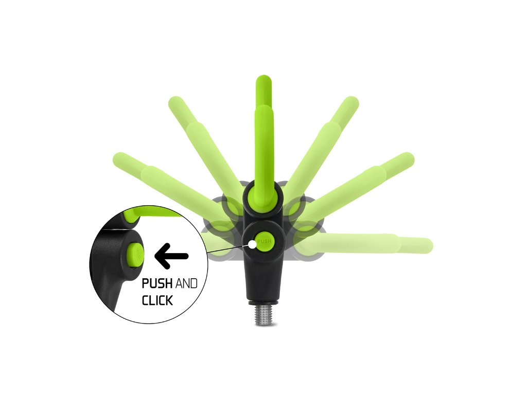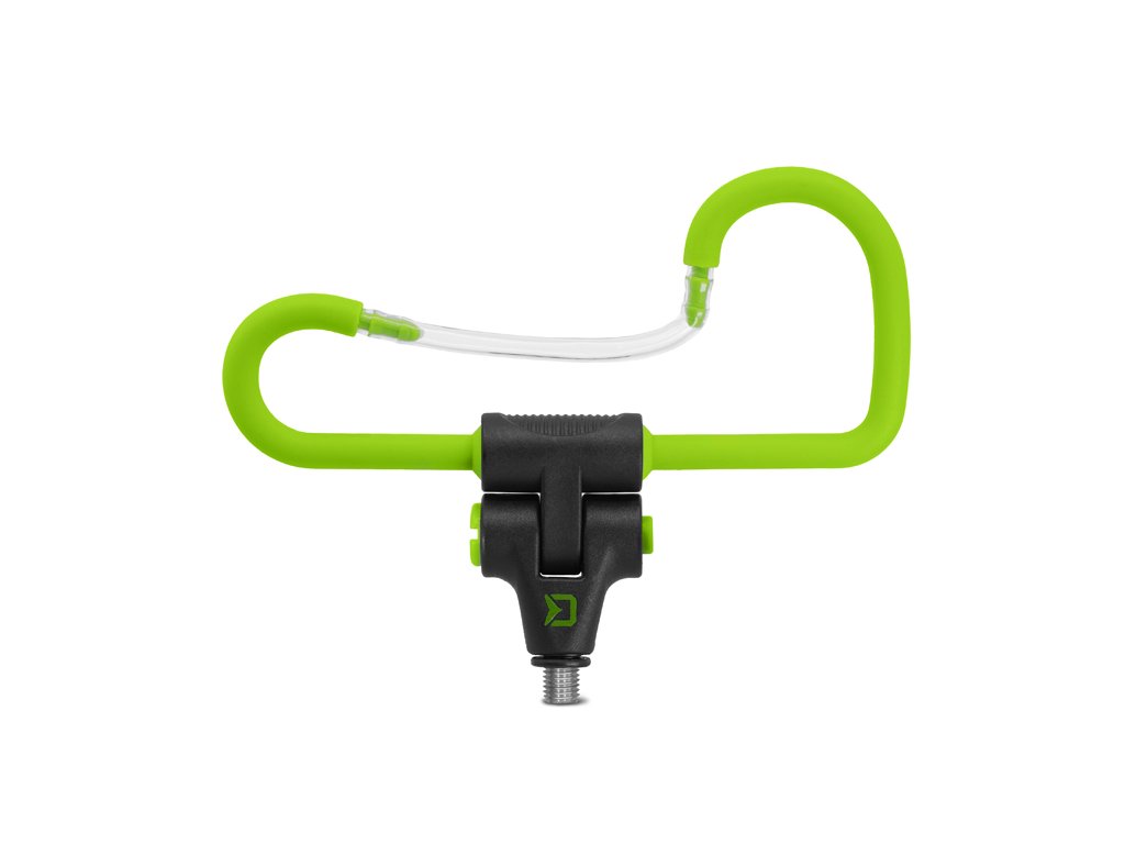 Držák na feeder tvaru L je výborným pomocníkem každého feederisty. Tvar držáku umožní udržet prut ve vidličkách i při silném záběru. Díky důmyslnému systému tlačítka ve spodní části, lze tento držák polohovat a následně polohu zajistit. Šířka ramen je 17cm. Držák je osazen univerzálním závitem a je kompatibilní s většinou vidliček a stojanů dostupných na trhu. Barevná zeleno-černá kombinace dokonale doplňuje feederovou řadu REAXE.Doplňkové parametry