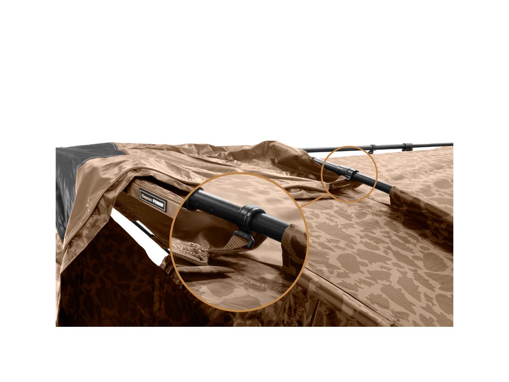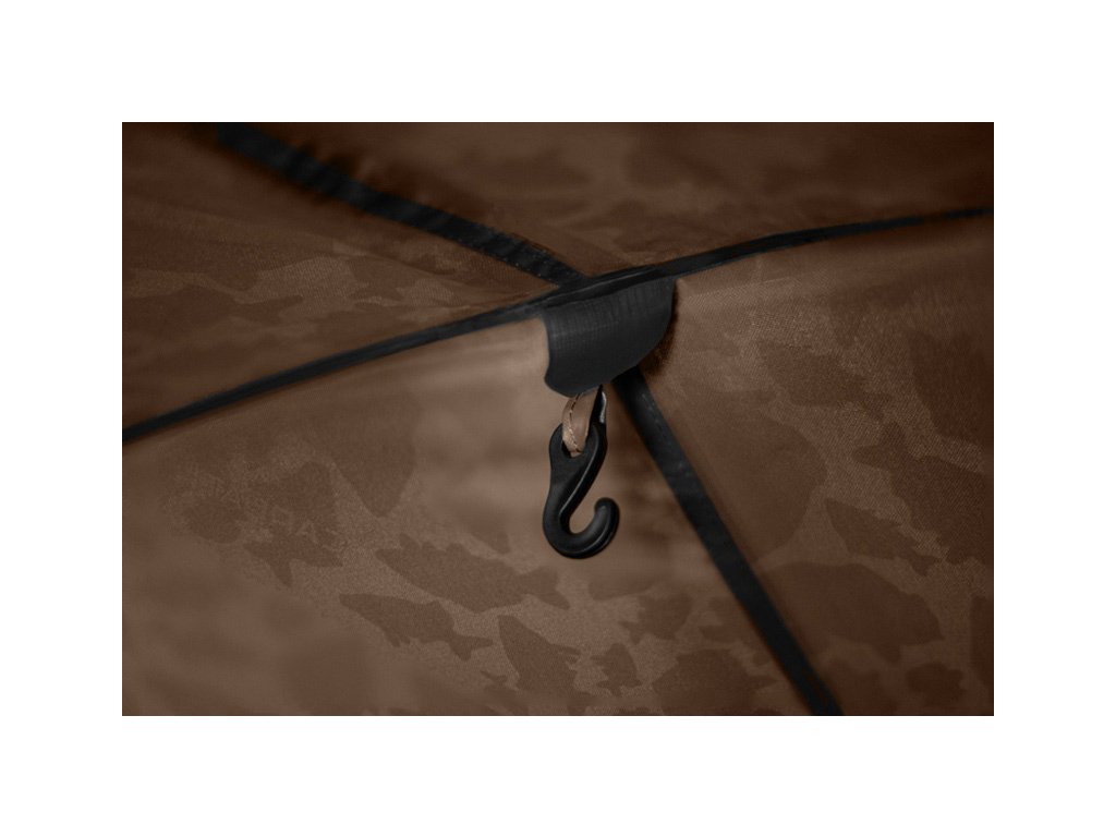 Vlajková loď v segmentu bivaků od společnosti Delphin. To je bivak C-3 LUX CARPATH, který je určen těm nejnáročnějším rybářům mezi námi. Extra pevná garážová konstrukce se třemi žebry zaručuje nekompromisní stabilitu v jakýchkoliv povětrnostních podmínkách. Spolu s použitou látkou nejvyšší kvality a kompletně podlepenými švy odolá i silným bouřím, větru a vydatnému množství srážek. Nespornou předností bivaku je látka s oblíbeným vzorem CARPATH, což určitě nadchne všechny příznivce této originální kamufláže. Díky rozměrům bivaku se do něj bez problémů vejdou 2 lehátka, přičemž stále zůstane uvnitř velkorysý prostor pro pohyb, ale také na tašky a další komponenty výbavy potřebné pro pohodlný pobyt u vody. V případě potřeby pojme vnitřní prostor dokonce až 3 lehátka. Samozřejmostí jsou také dva úchyty na zafixování prutů, ale také velký kšilt, který poskytuje ochranu před sluncem či deštěm. Uvnitř jsou na stropě bivaku navíc umístěny 2 háčky, na které je možné zavěsit například lampu. Bivak C-3 disponuje inovativním systémem CLIMA CONTROL, který byl navržen designérským oddělením značky Delphin. Tento systém je tvořen dvěma větráky na protilehlých stranách (nad vstupními dveřmi a nad zadním oknem). Díky tomuto důmyslnému systému lze zajistit cirkulaci vzduchu ve vnitřním prostoru bivaku v době, kdy není možné větrat pomocí velkých oken. Určitě ho oceníte zejména v noci, kdy výrazně napomáhá snižovat kondenzaci na vnitřních stěnách. Celý systém je navíc jednoduše ovladatelný zevnitř bivaku. K bivaku C-3 je možné dokoupit sadu předních plastových překrytí oken (které jsou standardně moskytiérové s látkovým překrytím), v transparentním provedení. Také je možnost zakoupení přehozu, který zvýší tepelný odpor, a tím i izolační vlastnosti samotného pláště. Bivak má v balení automaticky základní podlahu, která je fixována kvalitním zipem po celém obvodu bivaku. Odteď nehrozí nechtěné návštěvy hlodavců, či nečistoty pronikající do bivaků! C-3 LUX CARPATH je bivak bez kompromisů, který uspokojí i ty nejnáročnější rybáře a díky kterému bude každý pobyt u vody maximálně komfortní. Technické parametry: Vnější rozměr: 300x320x175cm Výška bivaku: 175cm Délka kšiltu: 60cm Transp. rozměry bivaku: 130x30x30cm Hmotnost bivaku: 13kg Transp. rozměry přehozu: 60x20x20cm Hmotnost přehozu: 4kgDoplňkové parametry