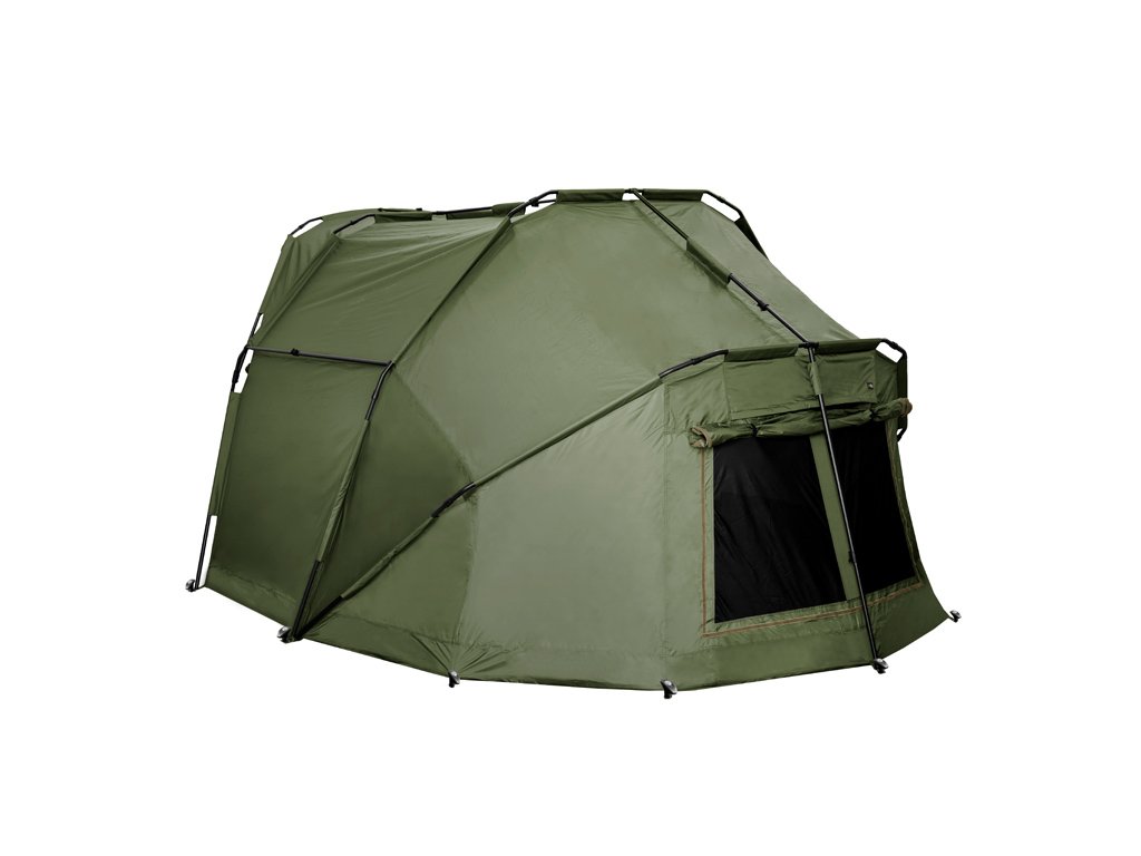 Nová vylepšená generace krále mezi velkými bivaky. YURTA NEO je charakteristický svým velkorysým prostorem, poskytujícím dokonalé útočiště během dlouhých pobytů u vody. Do tohoto bivaku bez problémů umístíte 3 lehátka, přičemž stále v něm zůstane dostatek prostoru na pohodlné fungování u vody. Základ bivaku tvoří mohutná trojžebrová konstrukce s vrchními vyztužujícími rozpěrami. Kromě toho však disponuje dvěma rozpěrami po bocích, díky kterým nabývá bivak ještě lepší stabilitu. V kombinaci s kvalitní látkou a kompletně podlepenými švy zvládne tento bivak jakékoli povětrnostní podmínky. V přední části se nachází velký kšilt s délkou nad vstupem až 70cm! Díky kšiltu vám nenaprší na případnou obuv před bivakem a během silné bouřky zamezí kapkám deště, dostat se na moskytiéru dveří. Kšilt také disponuje dvěma úchyty na pruty. Uvnitř jsou na stropě bivaku navíc umístěny 2 háčky, na které je možné zavěsit například lampu. V přední části se kromě dveří nacházejí také dvě okna. Obě jsou moskytiérová s možností transparentních fóliových oken, nebo možností plné textilie. Fóliová okna jsou součástí balení, a tak nemusíte dokupovat nic navíc! U modelu YURTA NEO jsme však mysleli i na lepší odvětrání bivaku a aplikovali jsme něj náš sofistikovaný systém CLIMA CONTROL. Tento systém je tvořen dvěma větráky na protilehlých stranách (nad vstupními dveřmi a nad zadním oknem). Díky tomuto důmyslnému systému lze zajistit cirkulaci vzduchu ve vnitřním prostoru bivaku v době, kdy není možné větrat pomocí velkých oken. Určitě ho oceníte zejména v noci, kdy výrazně napomáhá snižovat kondenzaci na vnitřních stěnách. Celý systém je navíc jednoduše ovladatelný zevnitř bivaku. Bonusem navíc oproti předchozí generaci je zipovatelná podlaha. Po celém vnitřním obvodu je několik cm nad zemí všitý zip, díky kterému je zamezeno pronikání hmyzu, hlodavců či vody do bivaku. Pro snadnější stavění bivaku má podlaha označený vstup. K bivaku je možné dokoupit přehoz, který je ze stejného materiálu jako bivak. Jeho osazením na bivak získáte pod kšiltem dalších uzavřených cca 40cm před bivakem. Přehoz navíc zlepší tepelně izolační vlastnosti bivaku. Bivak Delphin YURTA NEO nabízí maximální možný komfort a uspokojí i ty nejnáročnější rybáře! Technické parametry: Vnějš. rozměr: 380x310x180cm Výška bivaku: 180cm Délka kšiltu: 70cm Transp. rozměry bivaku:130x35x35cm Hmotnost bivaku: 14kg Transp. rozměry přehozu:60x20x20cm Hmotnost přehozu: 4,5kgDoplňkové parametry