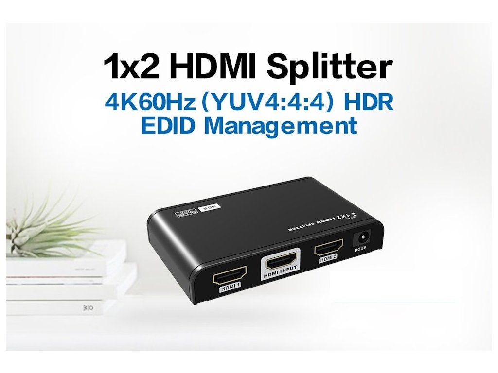 Tento kompaktní HDMI rozbočovač umožňuje připojit dva HDMI displeje současně k jednomu zdroji, jako je PC, notebook, DVD přehrávač nebo set-top box. Podporuje nejnovější standard HDMI 2.0 s maximálním datovým přenosem 18 Gb/s a rozlišení až 3840 × 2160 px při 60 Hz (Ultra HD 4K). Díky podpoře HDR (High Dynamic Range) zajišťuje vynikající kvalitu obrazu s vysokým dynamickým rozsahem.