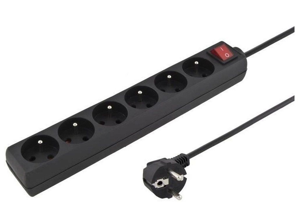 PremiumCord Prodlužovací přívod 230V 3m 6 zásuvek + vypínač, černý