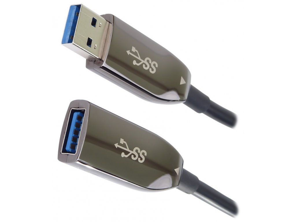 PremiumCord prodlužovací AOC kabel USB 3.0 7 mTento optický kabel je vhodný pro prodloužení kabelu USB o dalších 7 m. Standardní USB kabel je omezen délkou maximálně 5 m. Pomocí USB 3.0 optického kabelu je možné kabel prodloužit na celkovou délku vedení až 12 m. Disponuje odolnými konektory pro stabilní připojení. Kabel není zpětně kompatibilní s USB 2.0.
