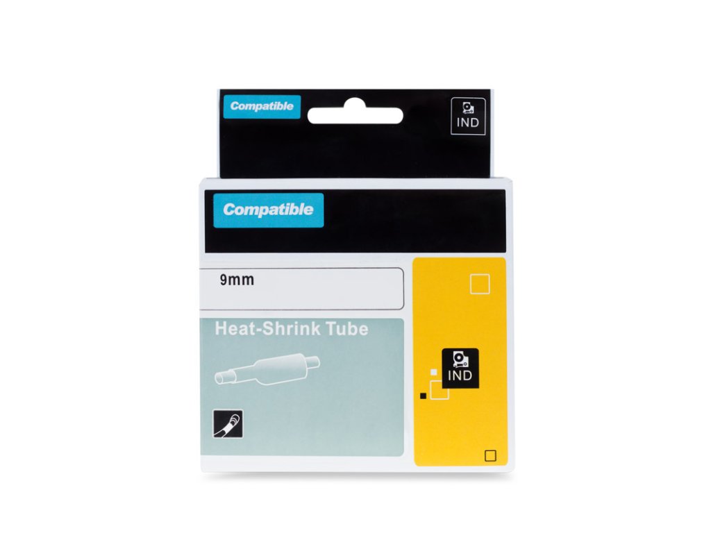 PRINTLINE kompatibilní páska s DYMO 18053, 9mm, 1, 5m, černý tisk/bílý podklad, RHINO, bužírka