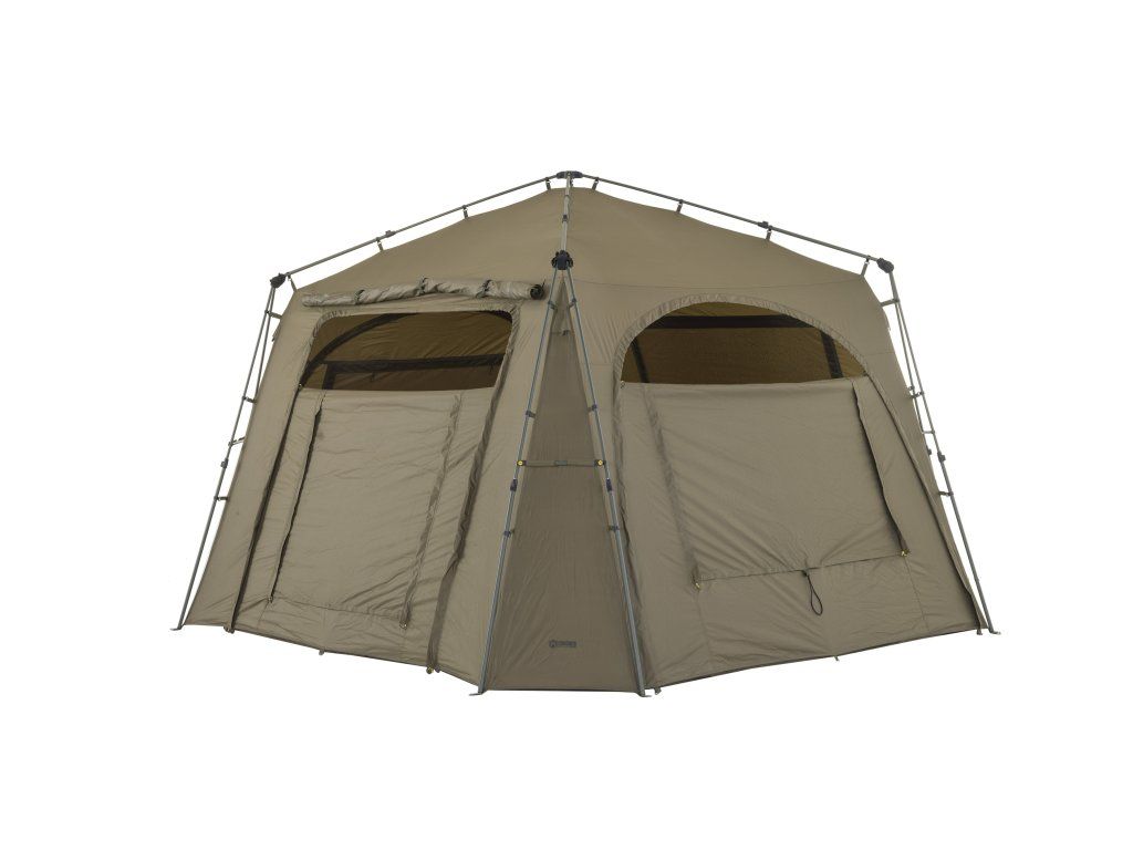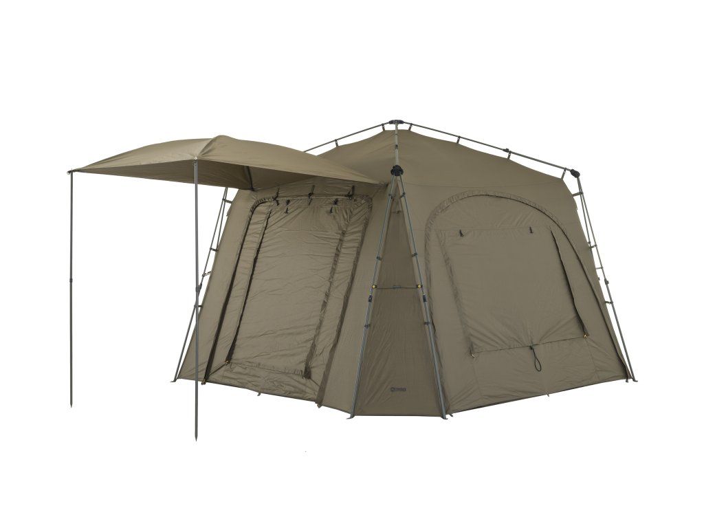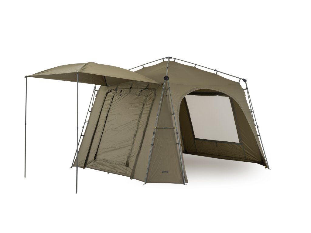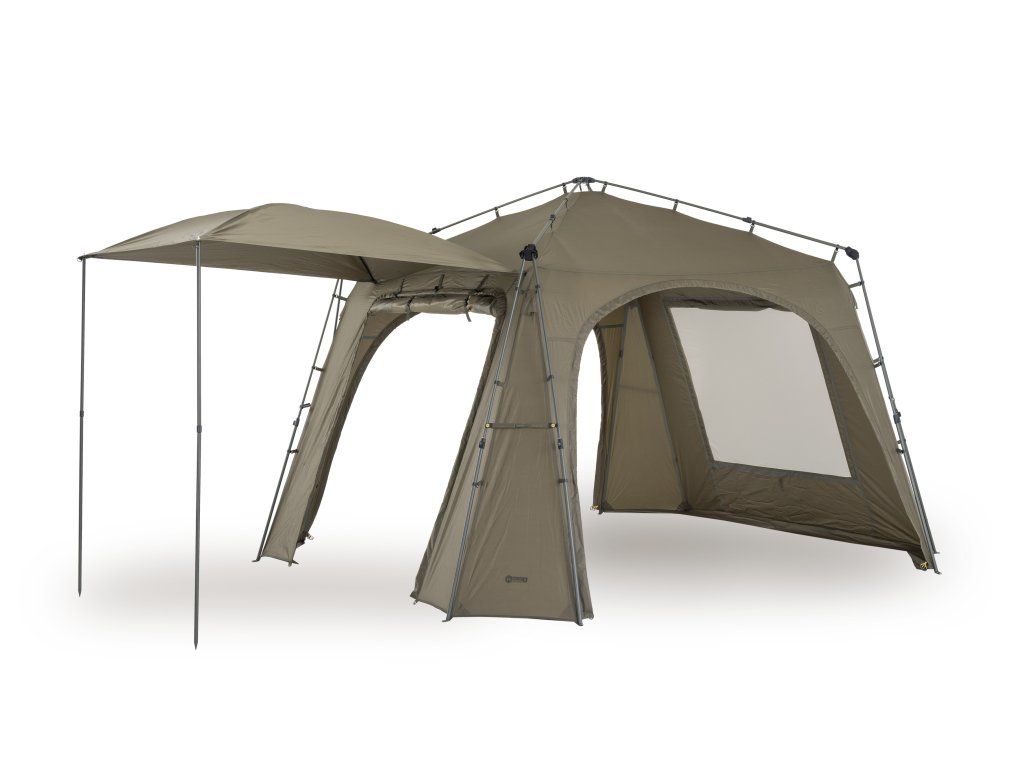 - K přístřešku Base Camp lze pomocí Bivvy Connection Kitu připojit jakýkoliv bivak nebo brolly na trhu