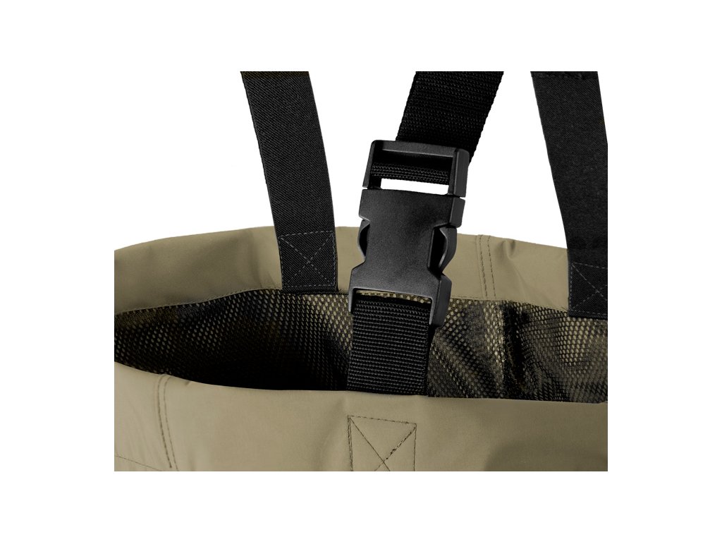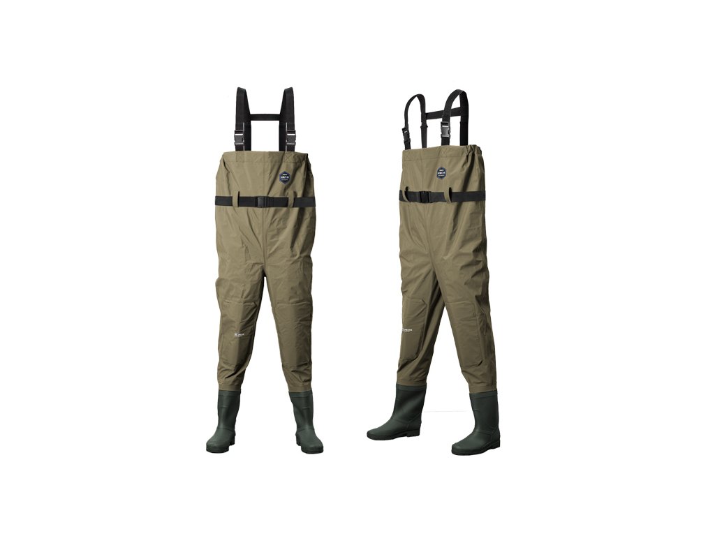 Prsačky HRON jsou vysoce spolehlivým modelem z dílny značky Delphin. Vyznačují se výbornými vlastnostmi a velmi kvalitním provedením. Každý detail je zpracován dokonale precizně. Moderní materiál zaručuje naprostou voděodolnost a zároveň pohodlné nošení díky nízké hmotnosti. Navíc uvnitř prsaček se nachází všitá síťka, která snižuje přímý dotyk kůže a vodotěsného materiálu, a tím výrazně omezuje pocení. Obrovským bonusem který je nevídaný v této kategorii je neoprenová výztuha kolen, což umožňuje například i velmi komfortní klečení ve vodě. Kromě standardních nastavitelných popruhů na ramena, disponuje tento model také vyjímatelným páskem, což umožní ještě lepší přizpůsobení postavě rybáře. Gumové holínky s odolnou a stabilní podrážkou vás podrží i v náročnějších podmínkách. Samozřejmostí jsou také výčnělky v oblasti paty pro snadnější vyzouvání. Složení: taslon / PVCDoplňkové parametry