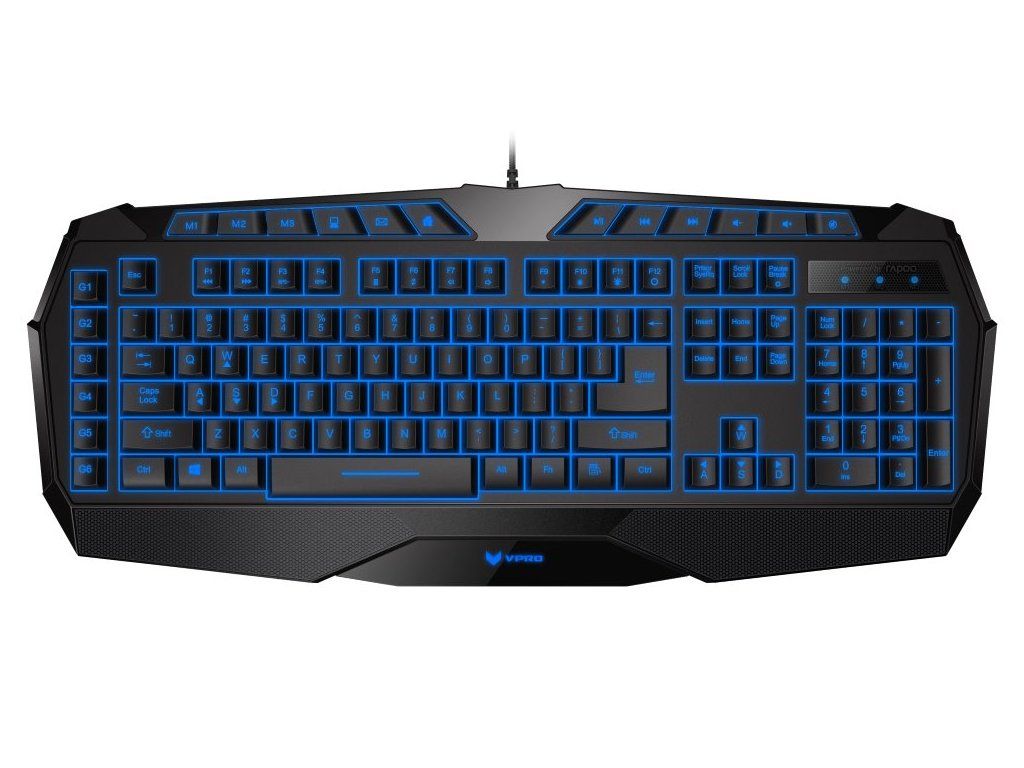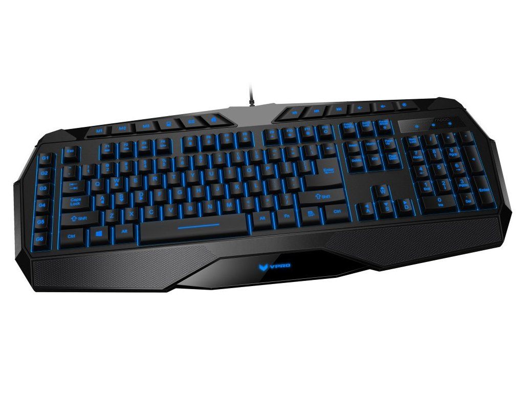 Rapoo VPRO V52Herní klávesnice s barevným podsvícením pro vylepšení vašich herních zážitků. Podsvícení je volitelné ve třech barvách. Potěší také 122 programovatelných kláves. Klávesnice je voděodolná, tudíž si můžete vychutnat osvěžující nápoj i během herního nasazení bez obav z nehody. Nechybí ani funkce anti-ghosting. Připojení k počítači je realizováno skrze USB konektor.