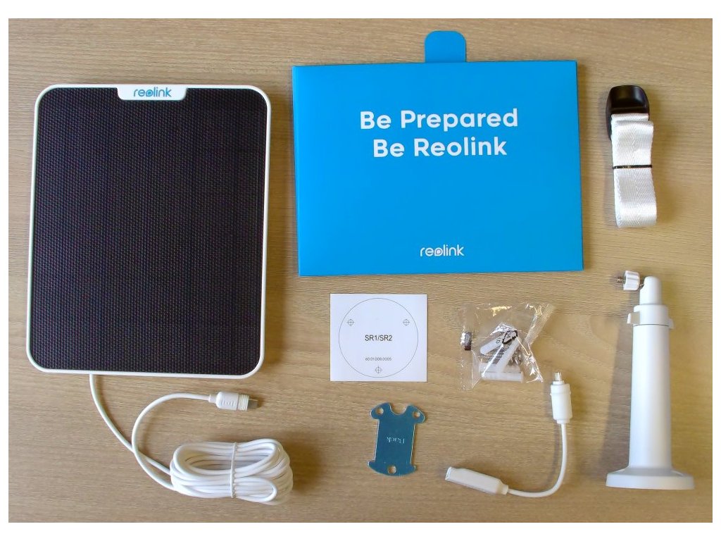 Součástí balení je venkovní držák, popruh, šablona montážních otvorů, redukce z USB-C na micro USB a montážní šrouby.
