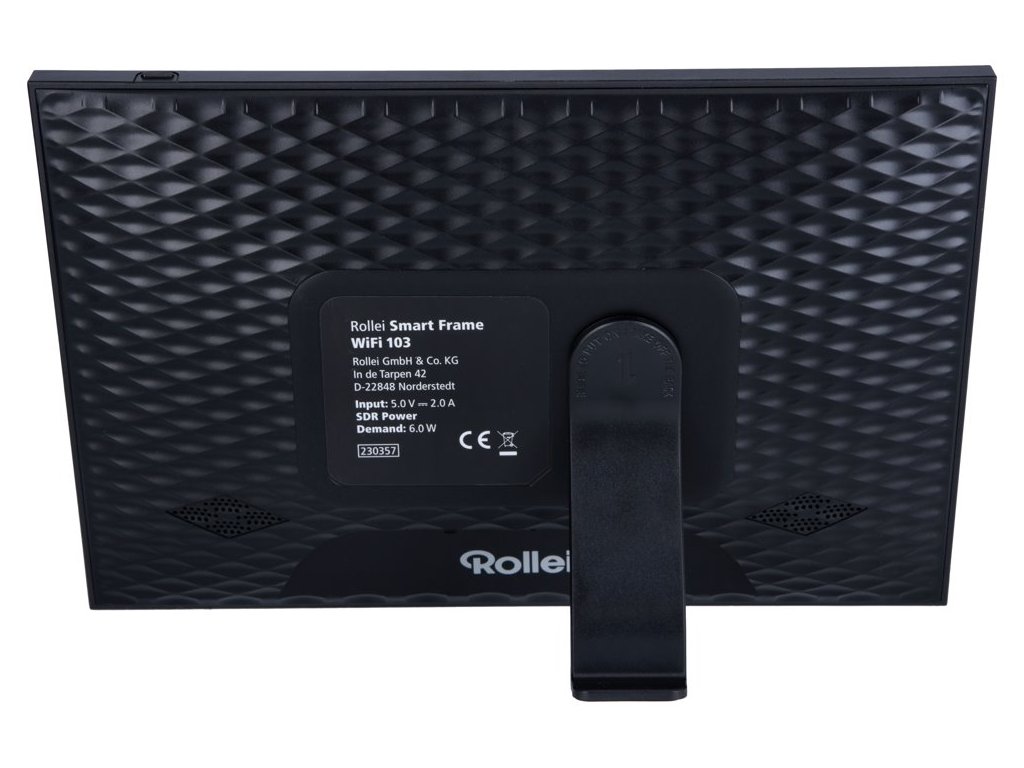 Rollei Smart Frame WiFi 103Wi-Fi digitální rámeček pro prezentaci fotografií a krátkých videí (max. 15 s), založený na operačním systému Android 6.0. Nabízí 10,1" dotykový IPS displej s rozlišením 1280 × 800 obrazových bodů, 2 reproduktory s celkovým výkonem 2 W a 8 GB interní paměti, která pojme až 7000 fotografií nebo 250 videí. Ty lze do rámečku odesílat přes mobilní aplikaci Frameo nebo klasicky přes paměťovou kartu microSD či externí paměť s konektorem USB. K dispozici je navíc mnoho různých funkcí, např. otáčení, štítek, čas, počasí či režim spánku.