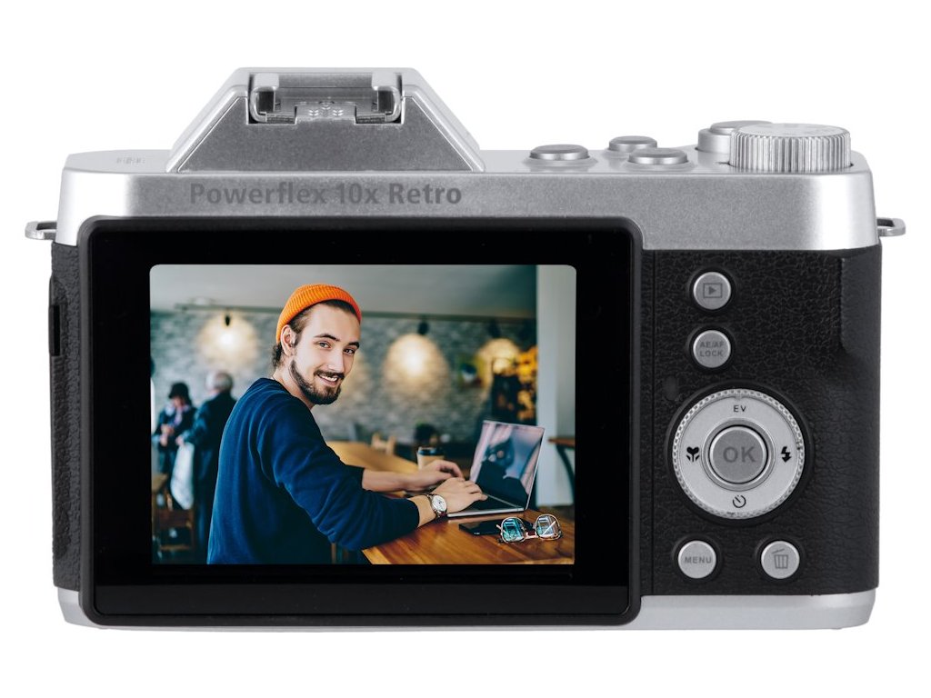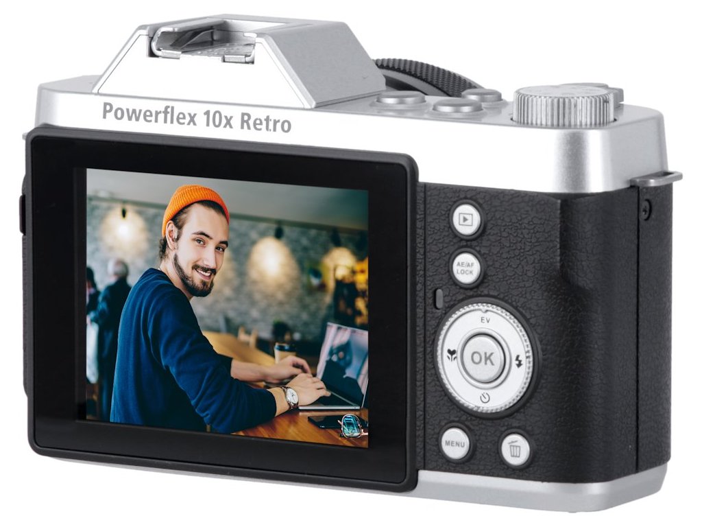Digitální fotoaparát Rollei Powerflex 10x Retro nabízí retro design, obrazový snímač Sony IMX415 s rozlišením 8 Mpx (až 64 Mpx interpolovaně) a objektiv s 10násobným optickým zoomem. Dokáže také nahrávat 4K video v rozlišení až 2880 × 2160 při 24 fps. Je vybaven bleskem a 2,88" LCD displejem na zadní straně pro snadné ovládání. Pro ukládání záznamů ve formátech JPG a MP4 disponuje slotem na microSD kartu do kapacity až 64 GB. K dispozici je osm fotografických režimů či funkce časosběru pro dokonalé zachycení každého okamžiku. Zajisté potěší také funkce detekce obličeje. Nabíjení a přenos dat lze realizovat pomocí USB-C konektoru, nechybí ale ani port HDMI a vstup pro mikrofon. Napájení zajišťuje vyměnitelná baterie s kapacitou 1500 mAh.