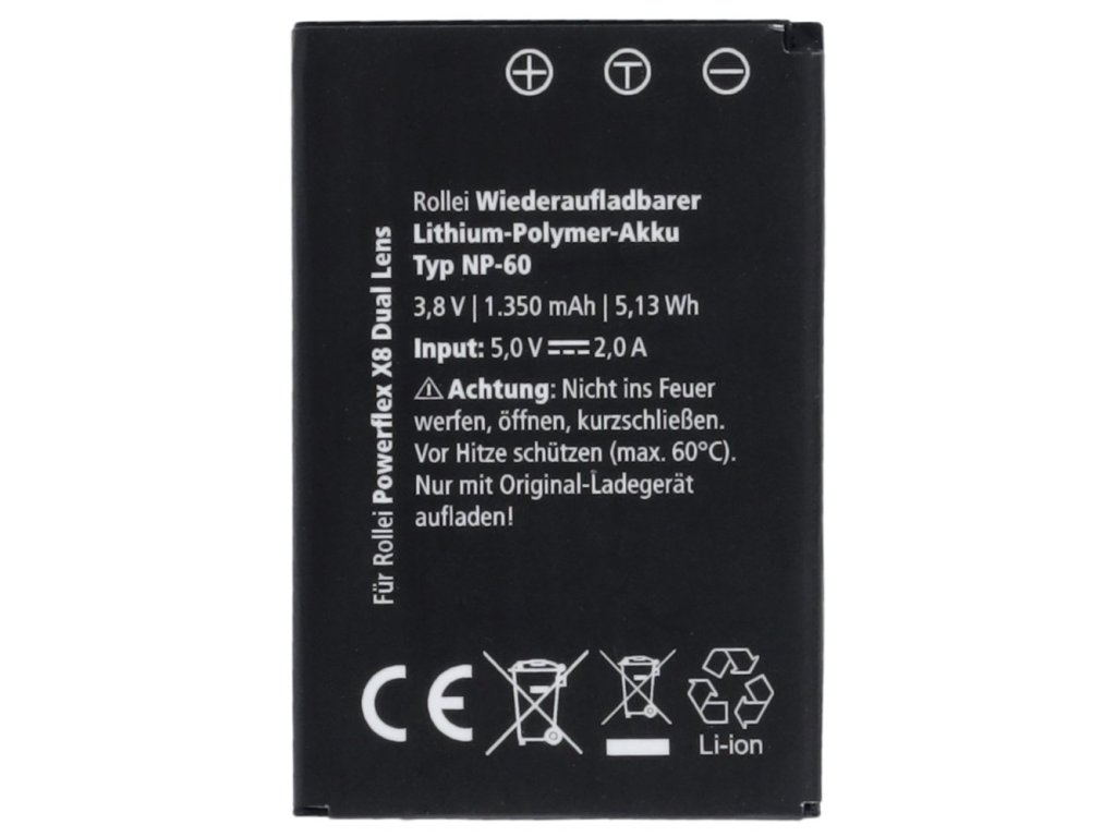 Napájení: lithium-polymerová baterie NP-60 (3,8 V/1350 mAh/5,13 Wh)