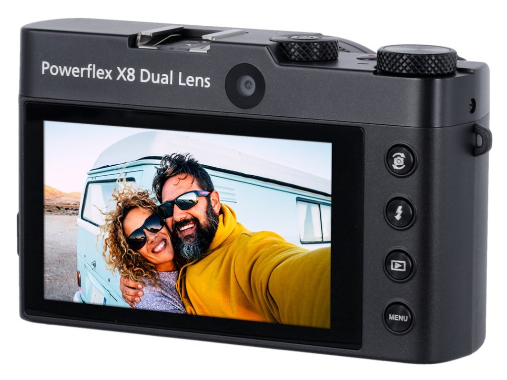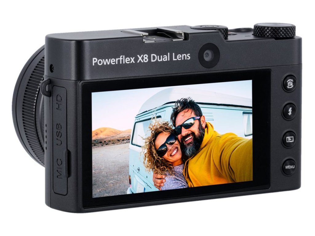 Rollei Powerflex X8 Dual Lens je inovativní digitální fotoaparát vybavený dvěma objektivy - hlavním na přední straně a selfie objektivem na zadní straně. Díky 8× optickému zoomu s ohniskovou vzdáleností 5,76–46,09 mm (ekvivalent 38–310 mm) zachytíte detailní záběry i vzdálených objektů, zatímco širokoúhlý režim je ideální pro krajinářskou fotografii.