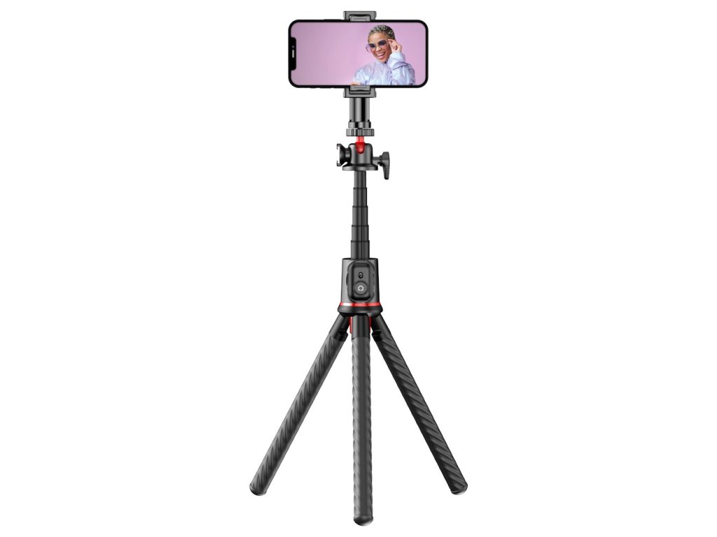 Gumové zakončení nožek zajistí stabilitu na vodorovné povrchu a bezpečí pro vaše foto zařízení. Ostatně samotná nosnost až 2 kg zajistí využití řady přístrojů. Konstrukce vám umožní rychlou a jednoduchou transformaci ze stativu do selfie tyče, čímž získáte další možnosti perspektivy pro své snímky. Snadné bezdrátové ovládání podporuje technologie Bluetooth s dosahem až 10 metrů.