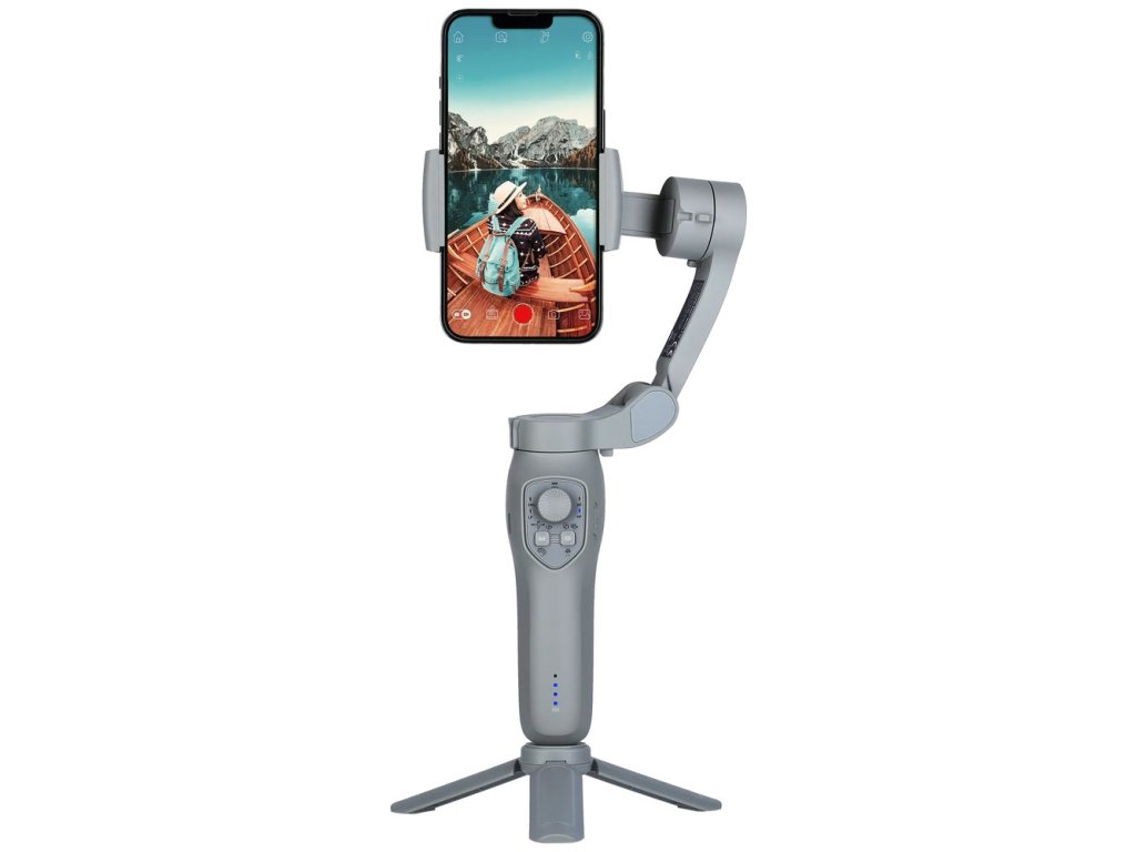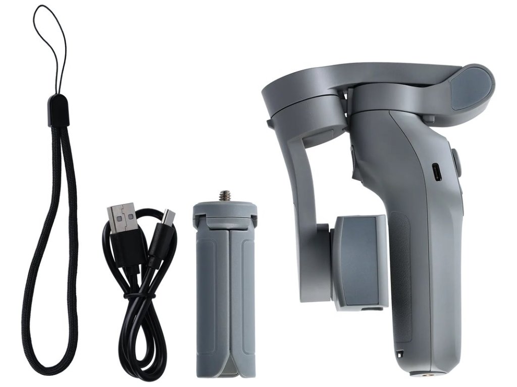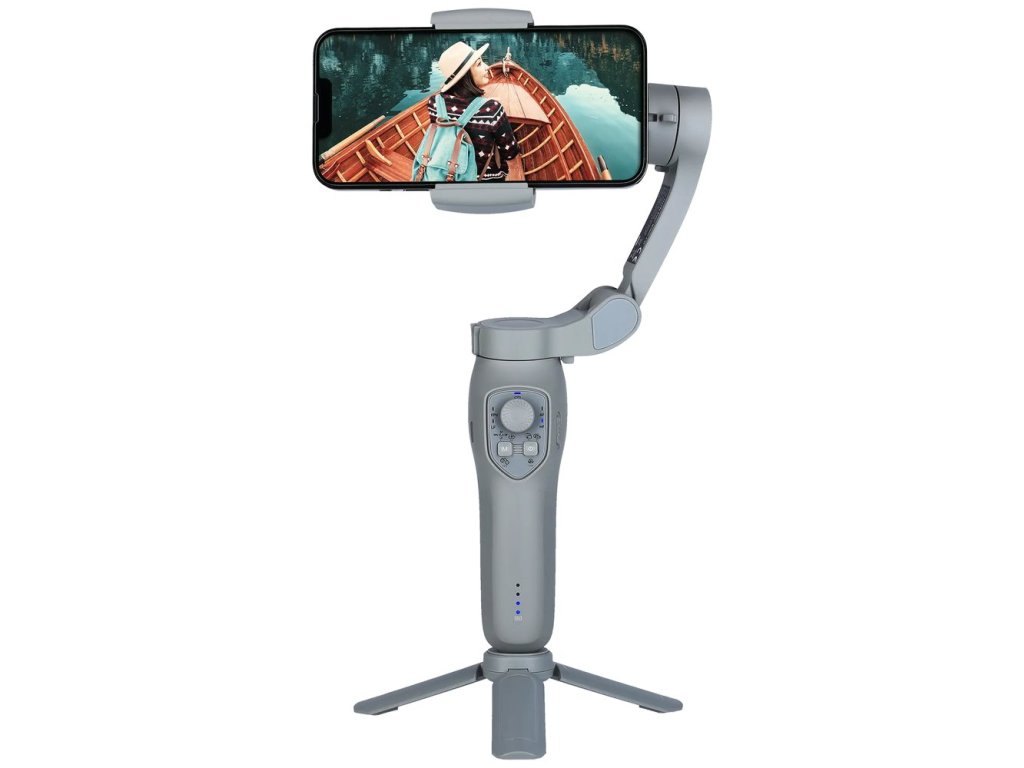 Elektronický stabilizátor pro mobilní telefony s operačním systémem Android či iOS je ideální pro pohodlné natáčení z ruky. Nabízí stabilizaci na třech osách, otáčení o 340° a náklon +/-160°. Rukojeť je vybavena ovládacím joystickem, tlačítkem pro automatickou změnu formátu na výšku nebo na šířku, tlačítkem pro změnu režimu a ovladačem zoomu. Integrovaná baterie s kapacitou 2000 mAh zajistí až 5 hodin provozu a lze ji dobíjet pomocí přiloženého USB-C kabelu. Stabilizátor lze navíc jednoduše složit a o to snadněji přepravovat. Součástí balení je také tripod na spodní část stabilizátoru.