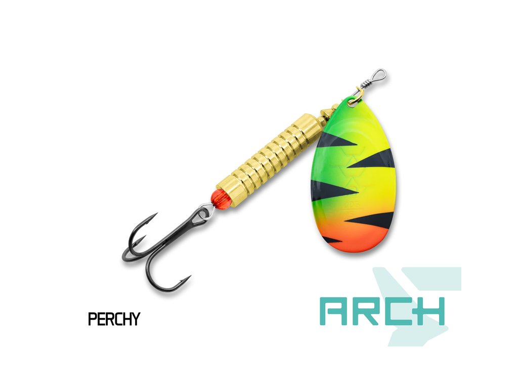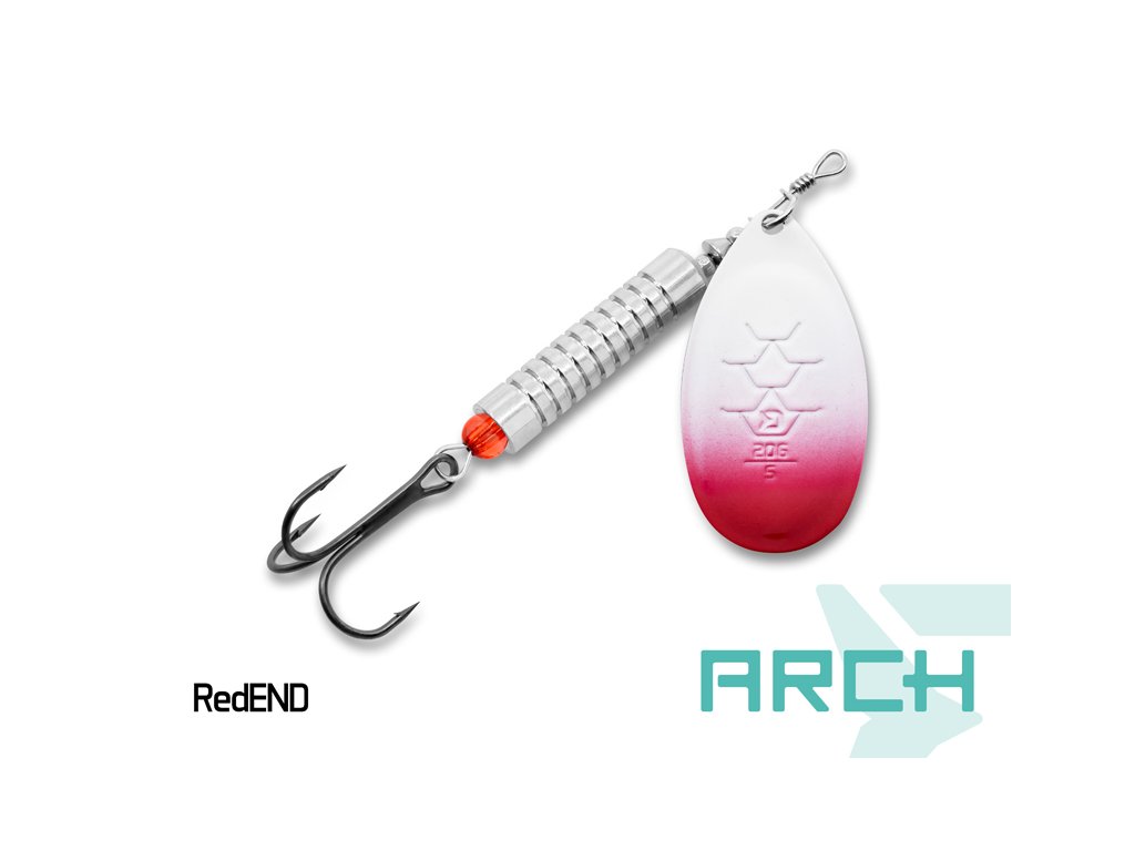 Je ideální nástrahou pro lov širokého spektra dravých ryb. Kvalitní zpracování, dráždivý pohyb a intenzivní vibrace nenechají v klidu žádného dravce. Model ARCH se vyznačuje kulatým listem ideálním pro použití na stojatých vodách. Precizně vyvážené tělo a lehce rotující list umožňuje dokonalý pohyb rotačky i při pomalém vedení nástrahy. Nástraha je opatřena kvalitním trojháčkem pro dokonalý zásek a dobře drží během souboje s bojovnými rybami. Designové provedení modelu Delphin ARCH představuje klíčový faktor úspěchu a je tvořeno léty ověřenými barevnými kombinacemi, které jsou nanášeny pomocí UV aktivních barev. Podstata UV složky se projevuje zejména v hlubších partiích nebo v přikalené vodě po deštích, kdy je viditelnost značně snížena. Zatímco běžné barevné spektrum se s přibývající hloubkou ztrácí, UV pigmenty odrážejí zbytkové světlo a nástraha se pro dravce doslova rozsvítí. Metalické provedení efektivně odráží sluneční světlo a silnými odlesky láká dravce ze širokého okolí. Díky různým velikostním provedením dokážete přesně zacílit na konkrétní druh ryby – menší velikosti jsou vhodné na lov pstruhů, jelců či okounů, střední velikosti zase na lov bolenů či candátů a ty největší vám pomohou zacílit na velké predátory jako jsou štiky či hlavatky.Doplňkové parametry
