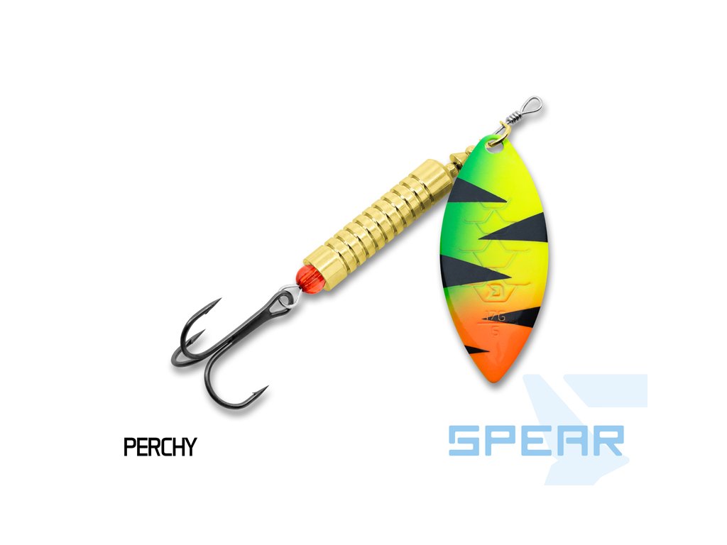Je ideální nástrahou pro lov širokého spektra dravých ryb. Kvalitní zpracování, dráždivý pohyb a intenzivní vibrace nenechají v klidu žádného dravce. Model SPEAR se vyznačuje prodlouženým vrbovým listem ideálním pro použití v tekoucích vodách jako jsou řeky a potoky. Precizně vyvážené tělo a lehce rotující list umožňuje dokonalý pohyb rotačky i při pomalém vedení nástrahy. Nástraha je opatřena kvalitním trojháčkem pro dokonalý zásek a dobře drží během souboje s bojovnými rybami. Designové provedení modelu Delphin SPEAR představuje klíčový faktor úspěchu a je tvořeno léty ověřenými barevnými kombinacemi, které jsou nanášeny pomocí UV aktivních barev. Podstata UV složky se projevuje zejména v hlubších partiích nebo v přikalené vodě po deštích, kdy je viditelnost značně snížena. Zatímco běžné barevné spektrum se s přibývající hloubkou ztrácí, UV pigmenty odrážejí zbytkové světlo a nástraha se pro dravce doslova rozsvítí. Metalické provedení efektivně odráží sluneční světlo a silnými odlesky láká dravce ze širokého okolí. Díky různým velikostním provedením dokážete přesně zacílit na konkrétní druh ryby – menší velikosti jsou vhodné na lov pstruhů, jelců či okounů, střední velikosti zase na lov bolenů či candátů a ty největší vám pomohou zacílit na velké predátory jako jsou štiky či hlavatky.Doplňkové parametry