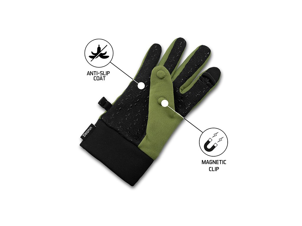 Vysoce praktické rukavice určené pro lov v chladnějších měsících, disponující možností odnímání konců ukazováčku a palce. Fixování těchto částí je možné pomocí inovativního systému, který jsme vytvořili použitím magnetů, všitých mezi dvě vrstvy tkaniny. Samotná tkanina je z vrchní strany hladká a flexibilní, ze spodní strany má pogumování ve tvaru magnetů zlepšující uchopení a protiskluzové vlastnosti rukavic. Vnitřní fleecová vrstva je měkká a hřejivá, což zaručuje skvělý komfort během zimního lovu ryb. Rukavice MagneTIP mají zdvojenou látku v oblasti zápěstí pro dodatečné zvýšení izolačních vlastností a lepší obepnutí zápěstí. Barevně jsou vyladěny do zelené barvy s efektní grafikou, stylově zkombinované s černou. Obě rukavice mají jednu stranu plastového klipu, pomocí kterého si je můžete spojit a odložit do tašky pro případ potřeby. Technické parametry: Materiálové složení: 100% Spandex a flísDoplňkové parametry