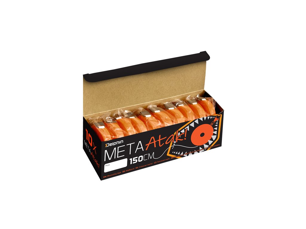 Stylový metr, který by neměl chybět ve výbavě žádného příznivce značky Delphin. MeTa Atak! je jedinečný metr, určený zejména pro milovníky přívlače, který v sobě skrývá několik vychytávek. Na první pohled zaujme efektním oranžovým designem s černými doplňky a grafikou v Atak! stylu. Na vrchu disponuje praktickou karabinkou, která umožňuje jeho upnutí na oblečení, případně na jiné místo, kde ho budete mít vždy po ruce. Konec samotného metru je opatřen praktickým držákem, kterým pásmo jednoduše vysunete. Pokud chcete, aby se pásmo "schovalo" zpět, stačí stisknout černé tlačítko na boku, čímž lehce dojde k jeho srolování. Celková délka metru až 150 cm umožňuje změřit i ty největší úlovky. Narozdíl od běžně prodávaných metrů je na metru MeTa i z druhé strany pásma uvedená stupnice v centimetrech, čili nikdy nedojde k záměně s jinými jednotkami. Navíc je velkoobchodní balení metrů přizpůsobené pro snadný prodej z pultu. Metry jsou totiž baleny v plnobarevných krabicích po 10 kusech. Technické parametry: Průměr metru: 5cmDoplňkové parametry