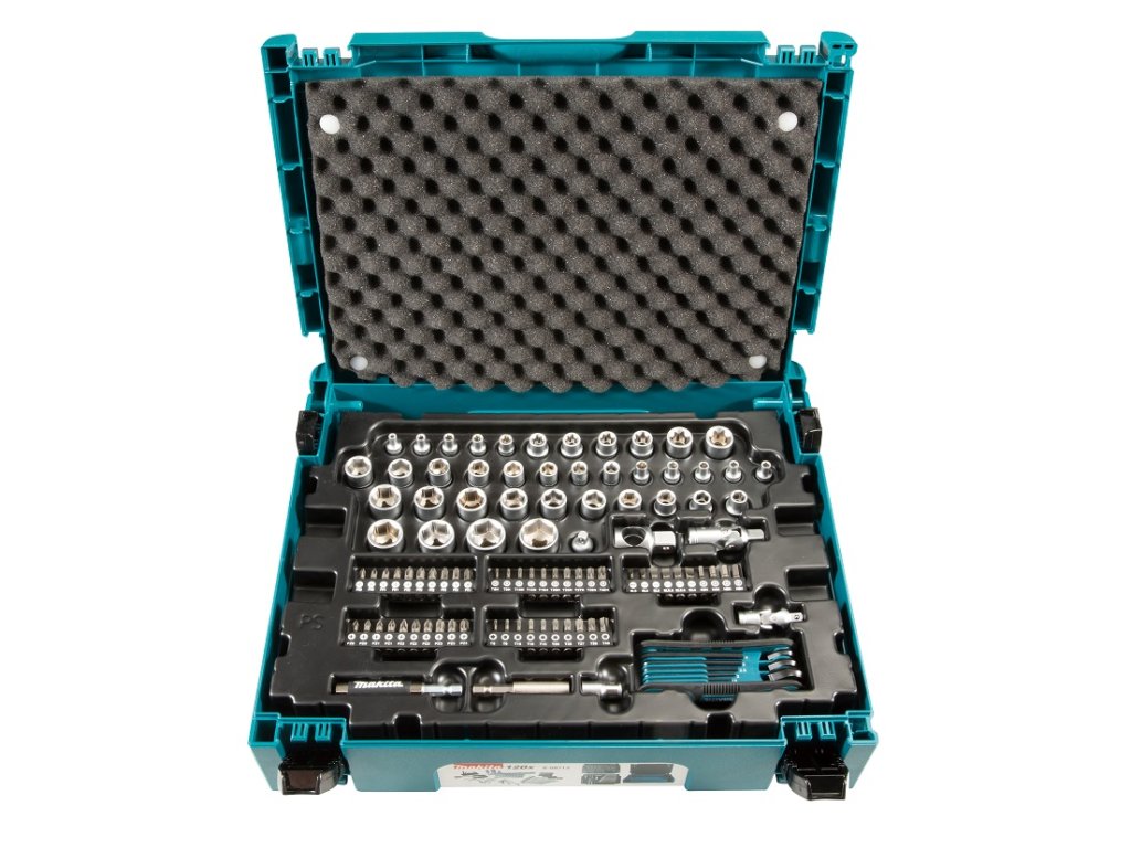 Součástí sady je ráčna 3/8", adaptér 1/4'', adaptér 1/2'' , adaptér na bity 1/4", sklopný adaptér 1/4", sklopný adaptér 3/8", prodloužení 3/8" 75mm, prodloužení 3/8" 150mm, prodloužení 1/4" 75mm, prodloužení 1/4" 150mm, utahovací hlavice 25mm 1/4" velikosti 4, 4.5, 5, 5.5, 6, 7, 8, 9, 10, 11, 12, 13 a 14 mm, utahovací hlavice 25mm 1/4" E velikosti 4, 5, 6, 7 a 8 mm, utahovací hlavice 28mm 3/8" velikosti 8, 9, 10, 11, 12, 13 ,14, 15, 16, 17, 18, 19, 20 a 21 mm, utahovací hlavice 25mm 1/4" E velikosti 10, 11, 12, 14, 16 a 18 mm, utahovací hlavice na svíčku 1/2" 16 a 21 mm, klíče s ráčnou 8, 10, 11, 12, 13, 14 a 15 mm, šroubovák 1/4", sada šestihranných klíčů 1.5, 2, 2.5, 3, 4, 5, 6 a 8 mm, adaptér na bity 1/4", magnetický držák bitů 1/4", držák bitů s pouzdrem 1/4", bity 25 mm PH0, PH1, PH2, PH3, PZ0, PZ1, PZ2, PZ3, T8, T9, T10, T15, T20, T25, T27, T30, T40, T8H, T9H, T10H, T15H, T20H, T25H, T27H, T30H, T40H,, H3H, H4H, H5H, H6H, SL0.5x3,0, SL0.8x4,0, Sl0.8x5,0, SL1.0x5,5 a SL1x6,0. Baleno v Makpacu.