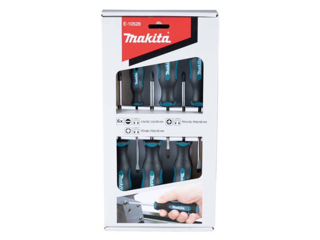 Sada obsahuje 6 kusů šroubováků o rozměrech SL4.0x100, SL5.5x100, PH1x100, PH2x100, PZ1x80, PZ2x100. Rukojeti jsou vyrobeny z velmi kvalitního materiálu odolného proti oleji. Samotný šroubovák je vyroben z kvalitní Cr-V oceli, která zajišťuje dlouhou životnost a špička šroubováku je magneticky upravena.