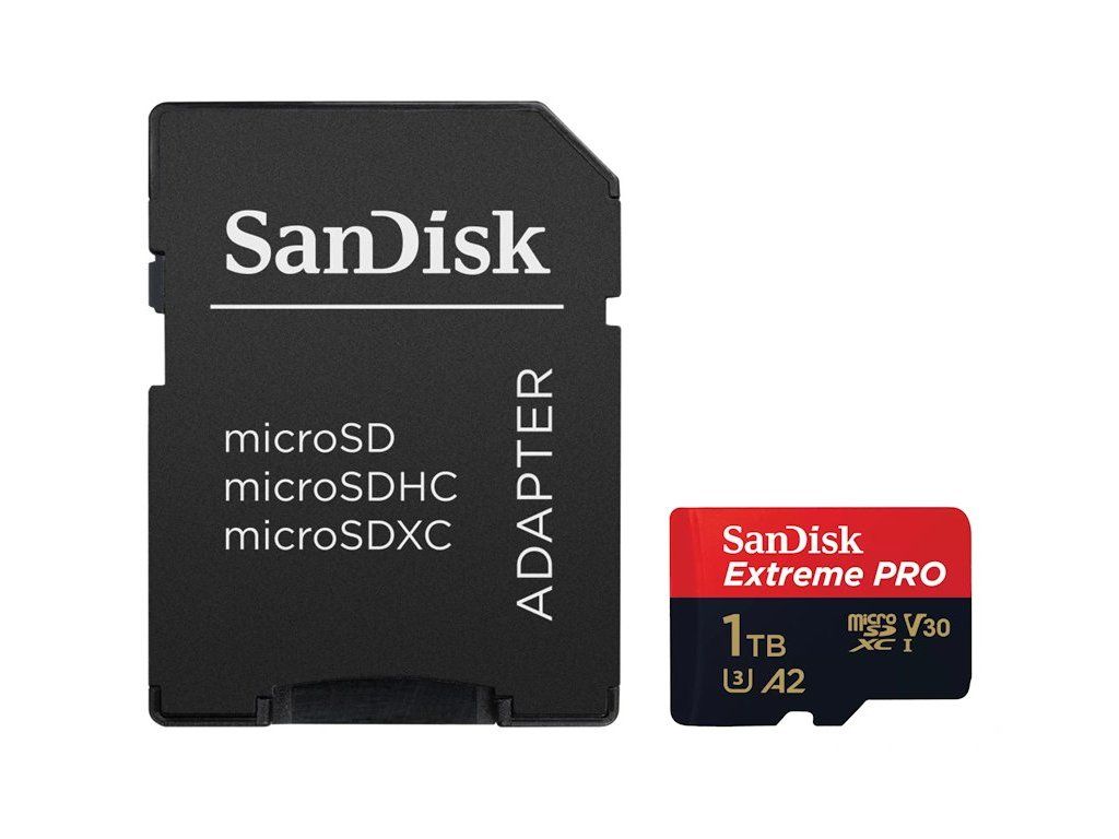 SanDisk Extreme PRO microSDXC 1TB / A2 C10 V30 UHS-I U3 / 200MB/s & 140MB/s / SD Adaptér + 2 years RescuePRO