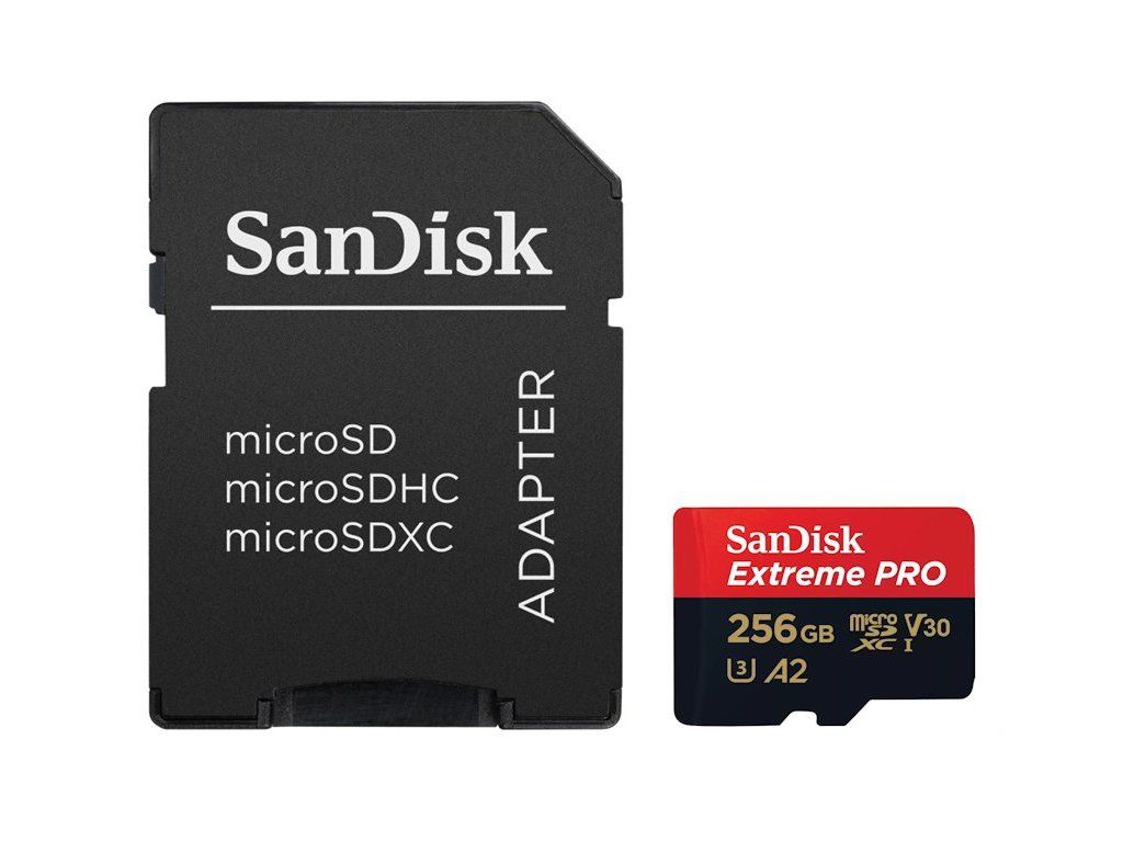 SanDisk Extreme PRO microSDXC 256GB / A2 C10 V30 UHS-I U3 / 200MB/s & 140MB/s / SD Adaptér + 2 years RescuePRO