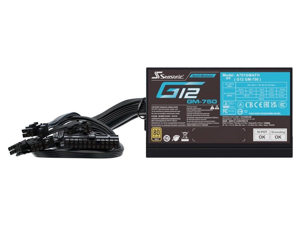 Seasonic G12-GM-750 (V1.5) 750 WNapájecí zdroj o výkonu 750 W je osazen tichým 120 mm velkým ventilátorem. Zdroj splňuje certifikaci 80PLUS Gold a má částečně odpojitelné kabely.