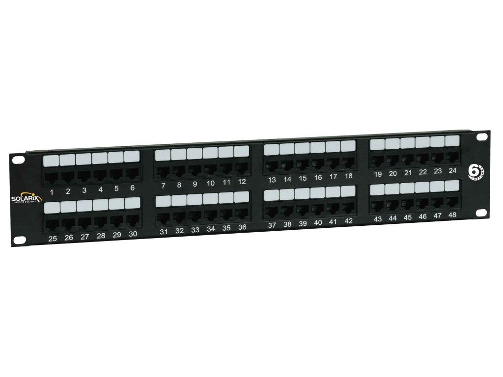 Solarix SX48-6-UTP-BKNestíněný patch panel nabízí 48 portů.
