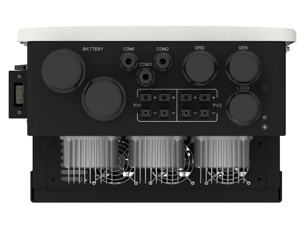 Multifunkční 3fázový asymetrický (100%) hybridní měnič/střídač od výrobce DEYE, který kombinuje funkce měniče, solární nabíječky a nabíječky baterií. Největší výhodou tohoto měniče je nastavitelný vstup/výstup „smart load“ kam lze připojit generátor, stringový měnič, nebo topnou patronu pro ohřev vody. Komplexní LCD displej zajišťuje uživatelsky konfigurovatelné a snadno dostupné ovládání (nabíjení baterie, AC/solární nabíjení, přípustné vstupní napětí v závislosti na různých aplikacích atd.). Je vybaven portem RS-485/CAN pro komunikaci a správu. Měnič poskytuje další informace, statistiky, grafy + možnost dálkové správy přes dodávaný Wi-Fi dongle. Součástí balení jsou sondy pro měření spotřeby i datalogger (Wi-Fi). Elektroměr součástí není.