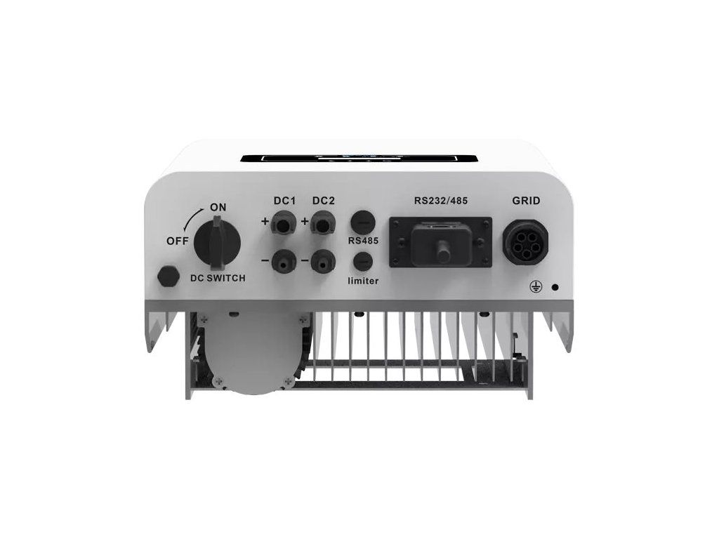 Síťový měnič s integrovaným limiterem pro zabránění přetoků do veřejné sítě. Měnič díky integrovanému MPPT regulátoru převede maximum energie vyrobené fotovoltaickými panely na 3x AC 230/400 V.