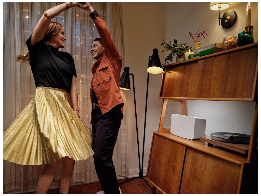 Sonos Five lze snadno kombinovat s dalšími reproduktory Sonos po celém domě pro synchronní přehrávání ve více místnostech. Vše funguje společně přes Wi-Fi bez nutnosti dodatečných kabelů nebo složitého nastavování.