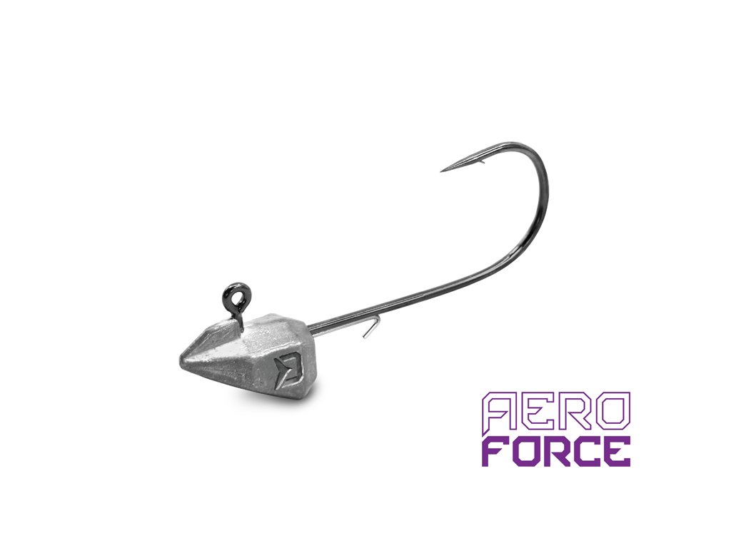 Delphin Aeroforce je speciálně tvarovaný jig určený k lovu pomocí měkkých umělých nástrah v blízkosti dna. Charakteristickým znakem je rovná plocha nacházející se na spodní straně hlavičky a speciální tvar, díky kterému je těžiště posunuto podstatně níže než je tomu u klasických jigů s kulatou hlavou. To způsobuje, že háček a nástraha zůstává vztyčená po dopadu na dno, což nejen snižuje riziko uvíznutí o různé překážky, ale zlepšuje prezentaci nástrahy která leží nehybně na dně. Aerodynamický tvar umožňuje snazší pronikání nástrahy různými překážkami, hladší a jednodušší pohyb nástrahy vodním sloupcem a její jemnější prezentaci. K zajištění nástrahy je místo límečku použit drátěný držák, který spolehlivě drží nástrahu na místě a nepoškozuje ji roztahováním. Samozřejmostí je tenký a zároveň velmi pevný háček s ostrým hrotem.Doplňkové parametry