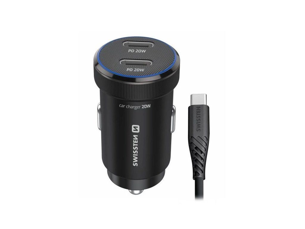 Swissten Cl Adaptér 2X Usb-C Pd, 20W Černý + Kabel Usb-C / Usb-C, 1 M