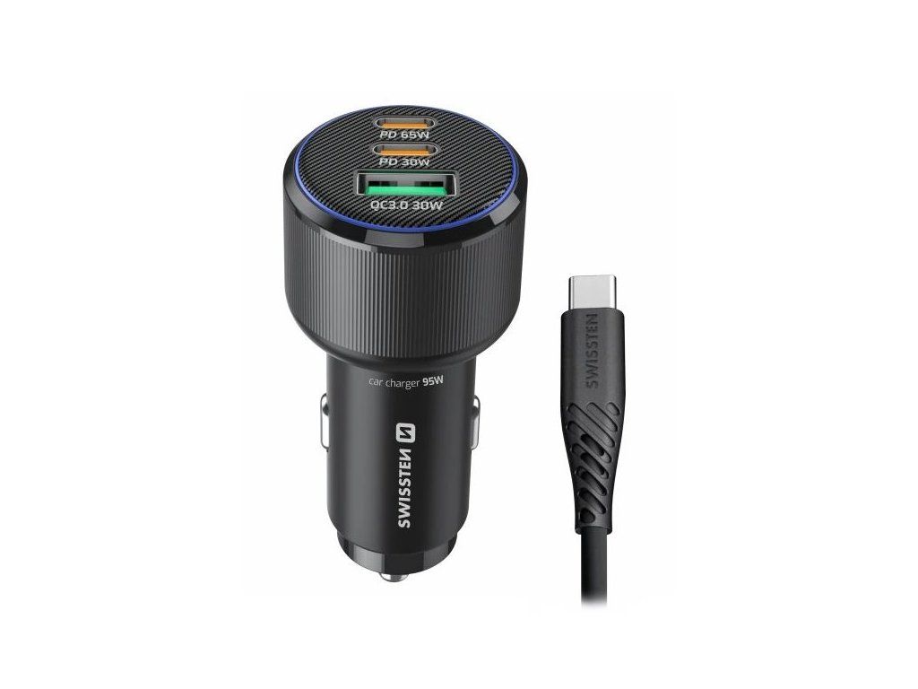 Swissten Cl Adaptér 2X Usb-C Pd + Usb-A, 95W Černý + Kabel Usb-C / Usb-C, 1 M