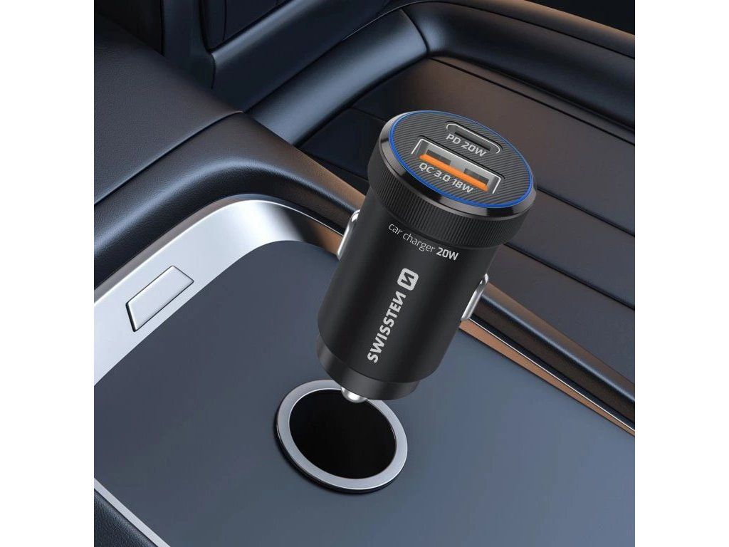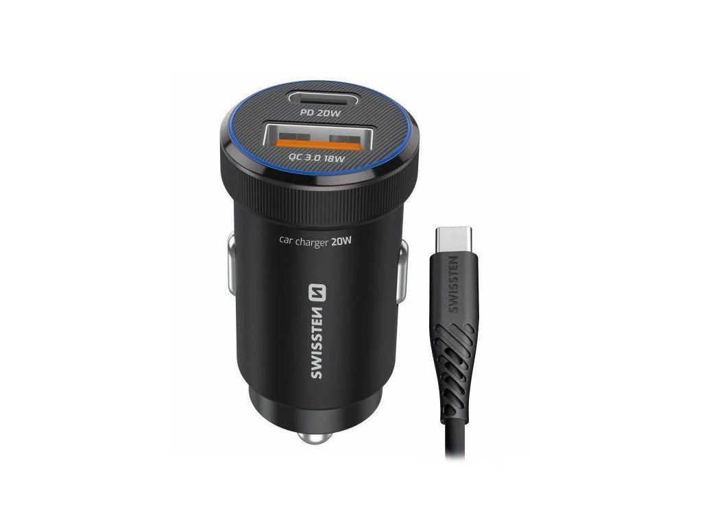 Swissten Cl Adaptér Usb-C Pd + Usb-A, 20W Černý + Kabel Usb-C / Usb-C, 1 M
