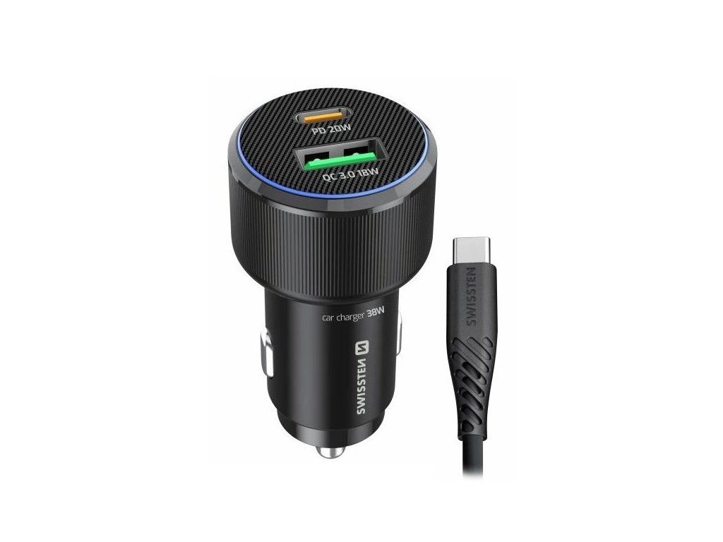 Swissten Cl Adaptér Usb-C Pd + Usb-A, 38W Černý + Kabel Usb-C / Usb-C, 1 M