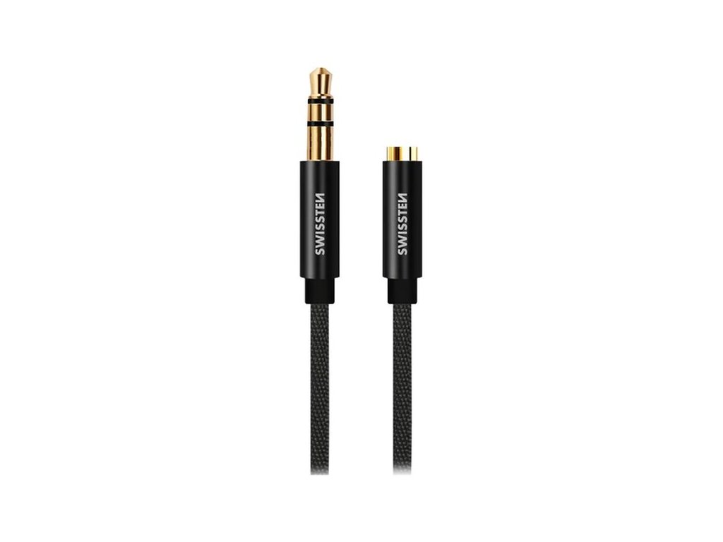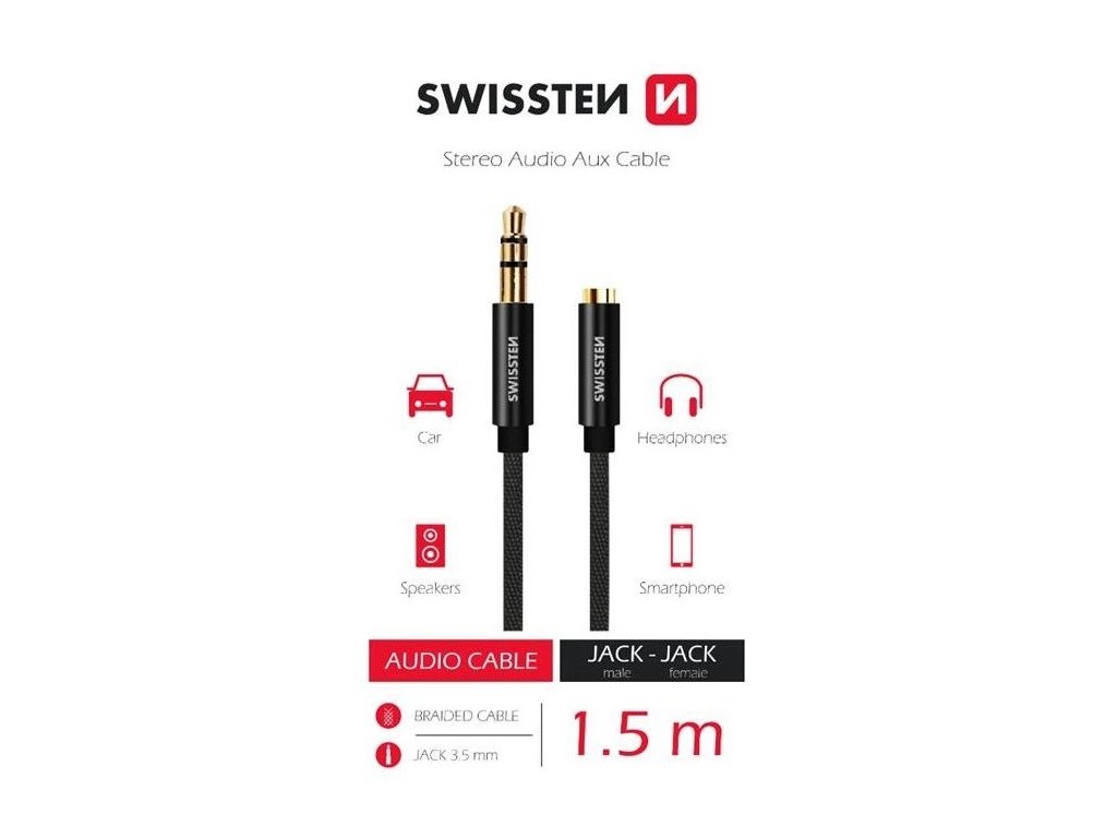 Swissten audio kabeltextile 3,5 mm jack(samec) - 3,5 mm jack (samice) 1,5 m černý
